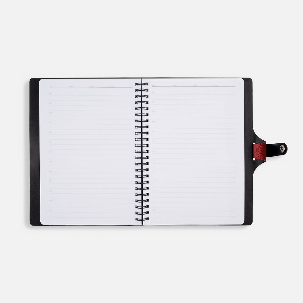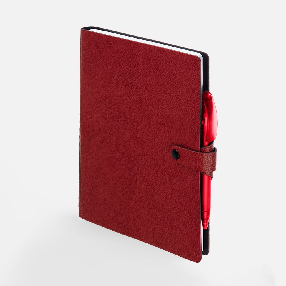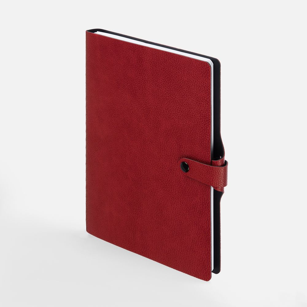 Ежедневник с гибкой обложкой, выполнен из материалов La Fite, красный РР и Waltz черный АА.