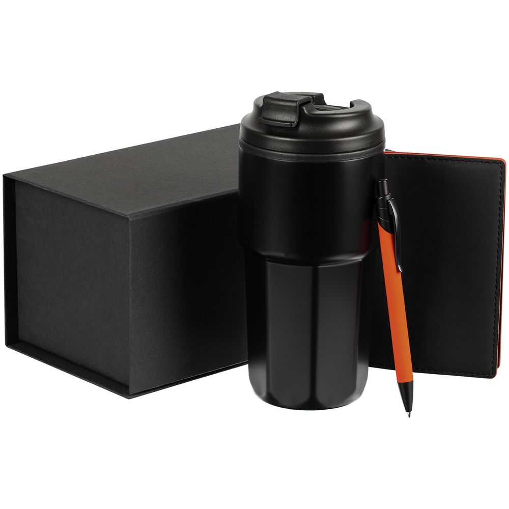 термостакан - нержавеющая сталь; полипропилен; обложка для паспорта - искусственная кожа; ручка - металл; пластик; коробка - переплетный картон