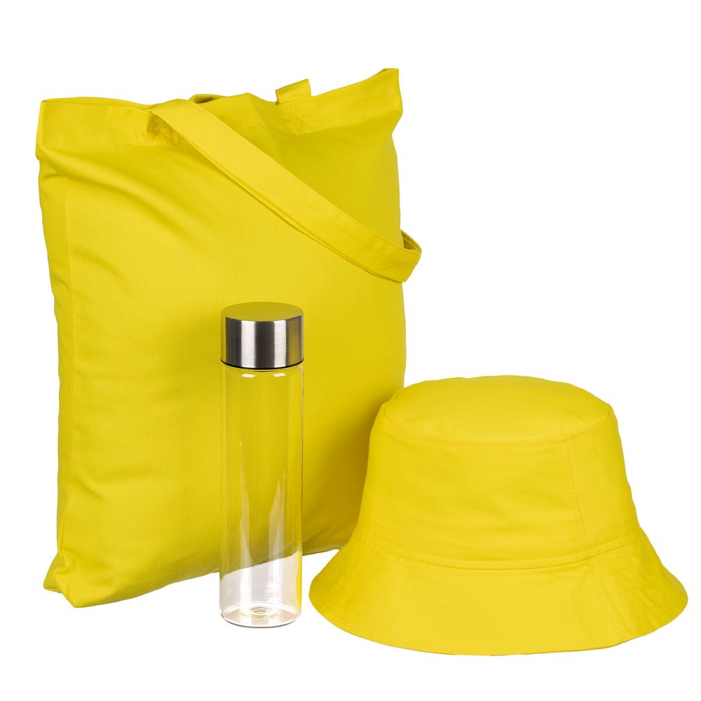 сумка - хлопок 100%; бутылка - пластик, металл; панама - хлопок 100%
