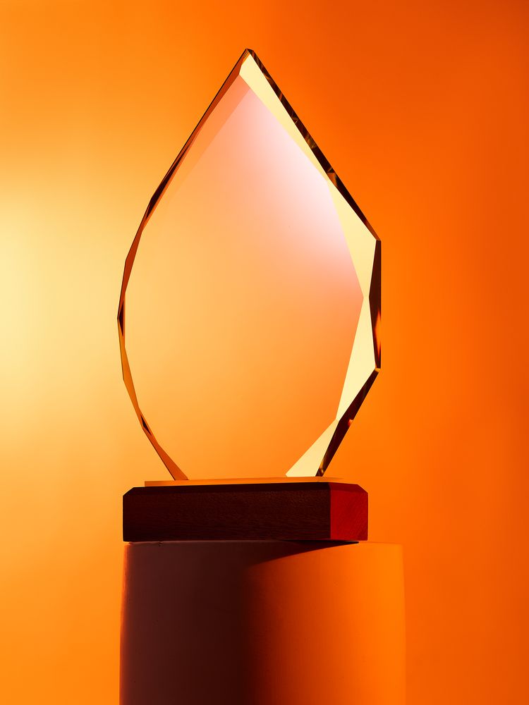Награда изготовлена из стекла К9, в основе которого лежит оптическое боросиликатное стекло. Эту марку стекла отличает низкий процент посторонних включений, высокий показатель преломления и высокая прозрачность — идеальные качества для изготовления наград премиального уровня.