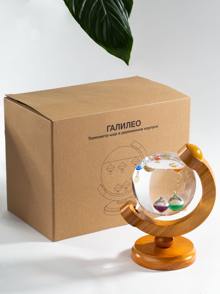 Термометр Галилео оригинальной формы, напоминающей глобус, добавит индивидуальности домашнему или офисному интерьеру. В основе его работы лежит физическая закономерность, впервые отмеченная великим Галилео Галилеем: плотность жидкости увеличивается при снижении температуры и уменьшается при ее повышении. И теперь стеклянные шарики в жидком парафине не только радуют глаз, но и позволяют с легкостью определить температуру в помещении.