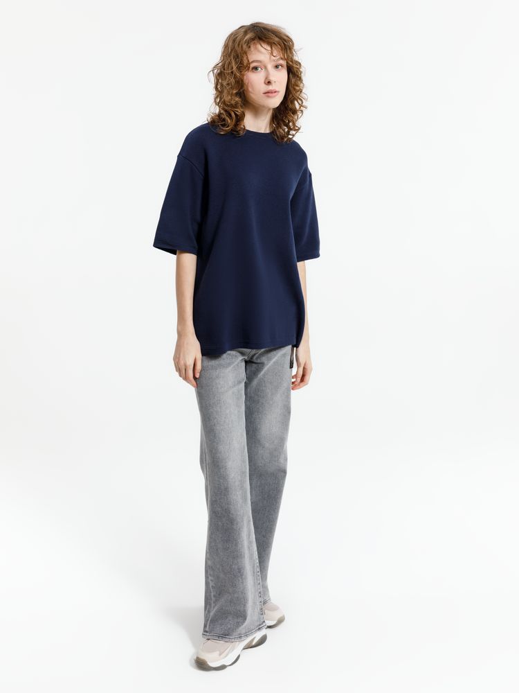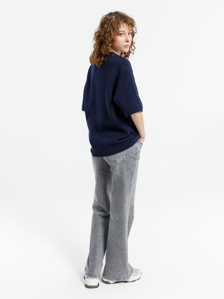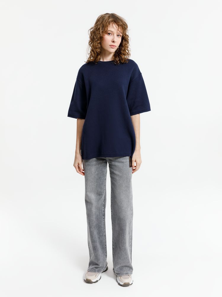 Siluetti Volumica — плотный вязаный джемпер-футболка прямого кроя с круглым вырезом и спущенной линией плеча. Фирменная бирка из силиконовой ленты станет интересной деталью, привлекающей внимание на фоне общей лаконичности модели.