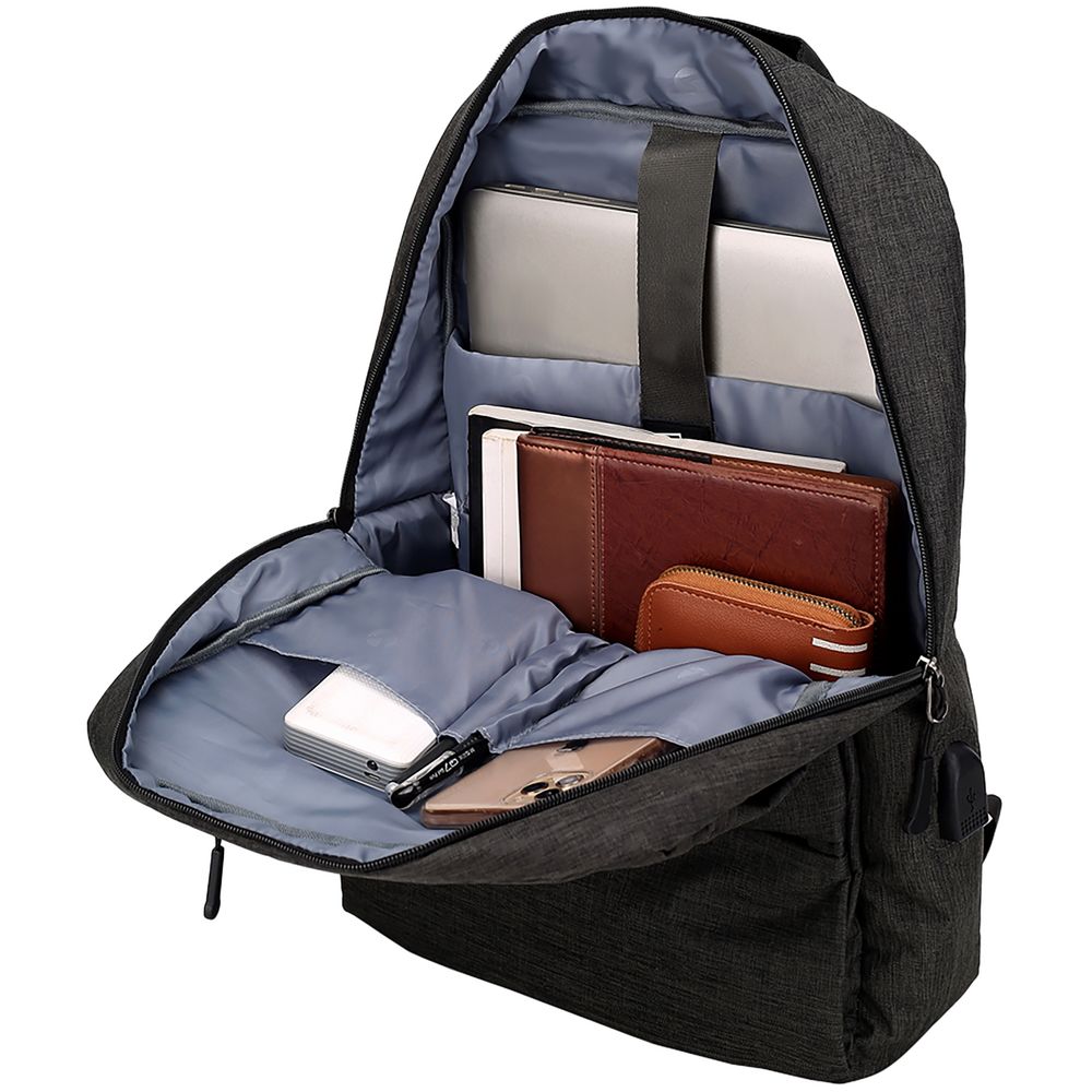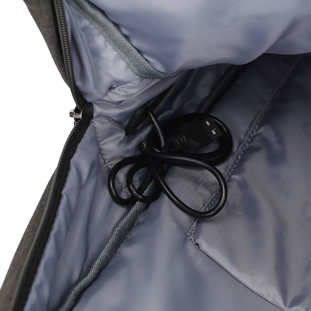 - Внешний USB-порт для зарядки гаджетов (внутри рюкзака — провод для подключения)