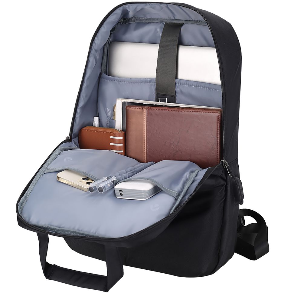 - Внешний USB-порт для зарядки гаджетов (внутри рюкзака — провод для подключения)