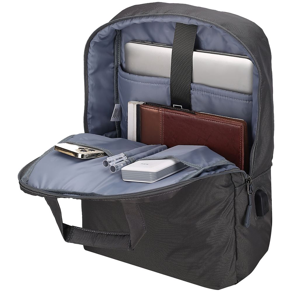 - Переднее отделение на молнии для хранения различных аксессуаров: ключей, наушников, мышки, смартфона, зарядных устройств