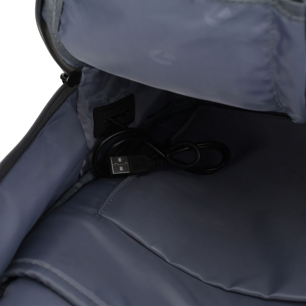 - Внешний USB-порт для зарядки гаджетов (внутри рюкзака — провод для подключения)