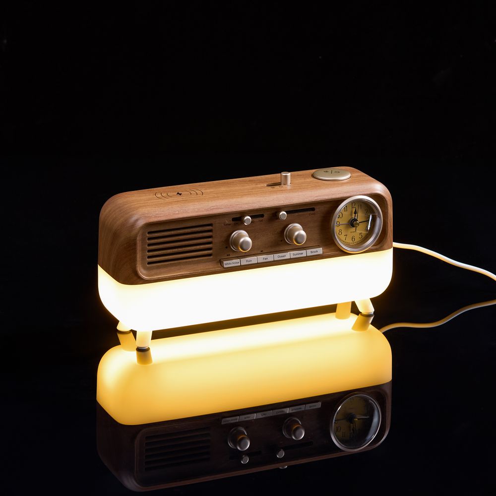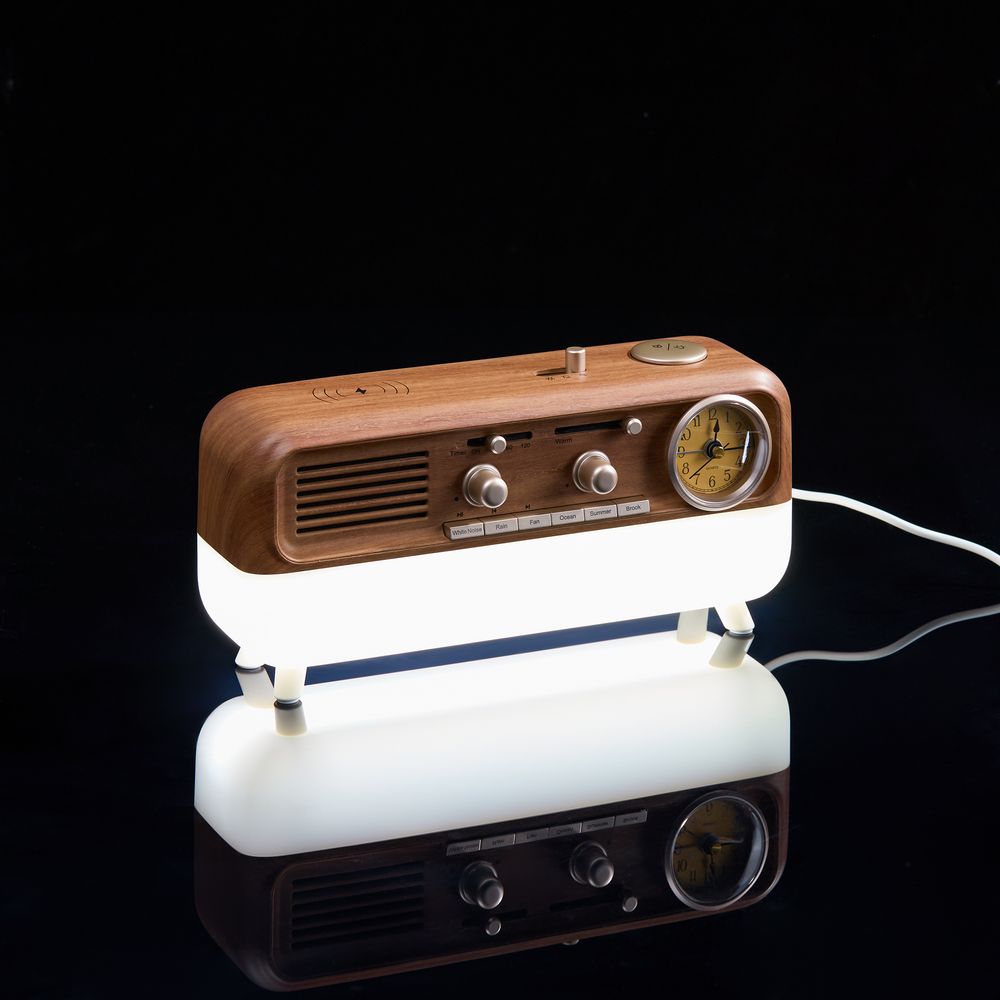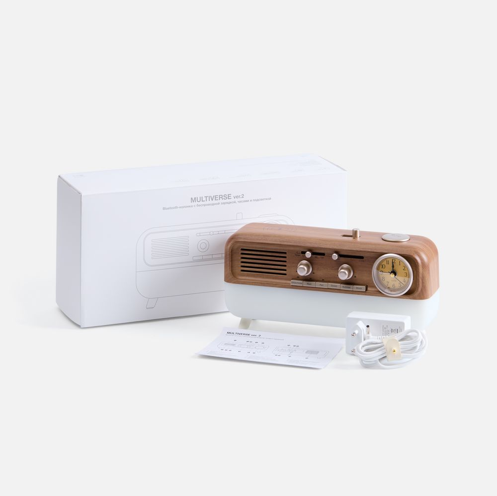 Bluetooth-колонка с аналоговыми часами Multiverse сразу привлекает внимание своей формой, напоминающей радиолу. Несмотря на ретро-стилистику, это современное и многофункциональное устройство.