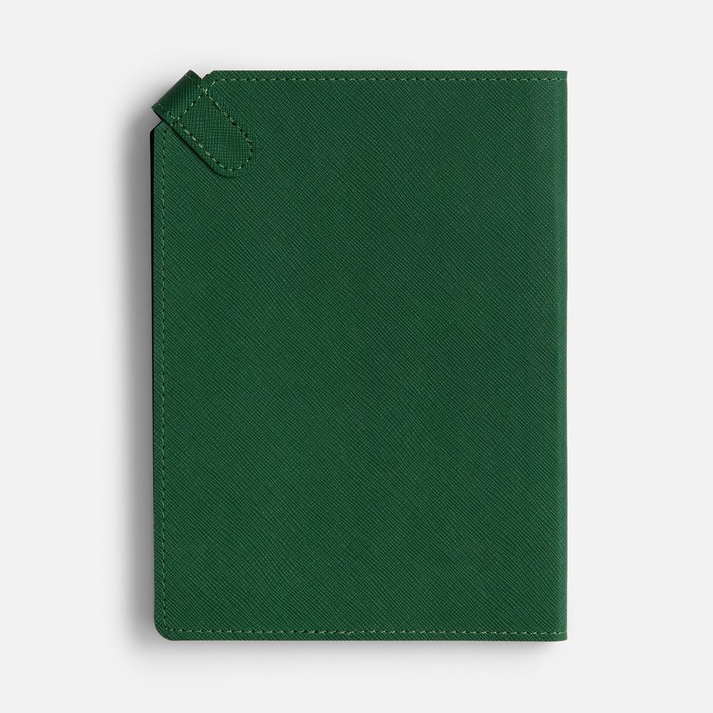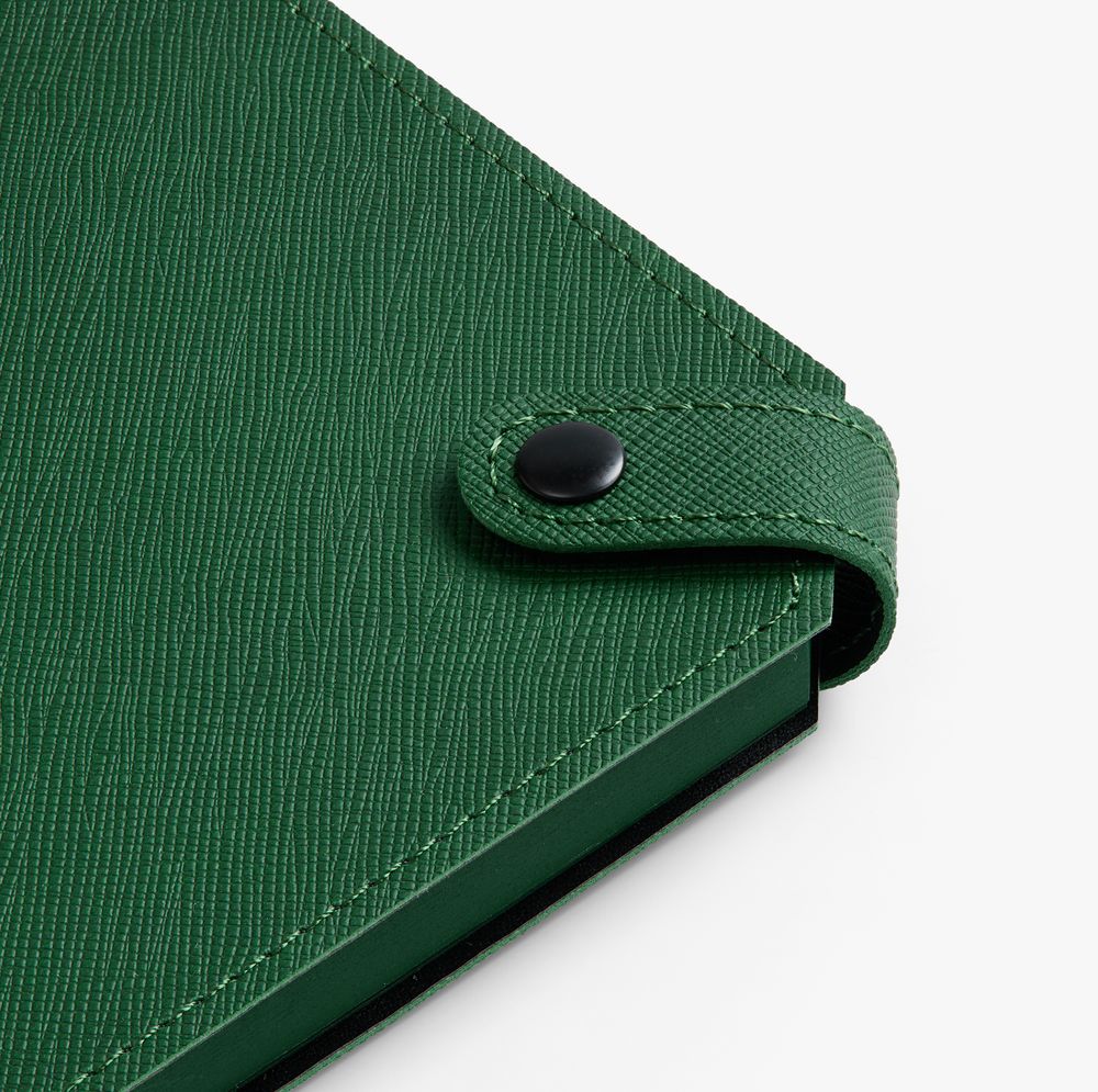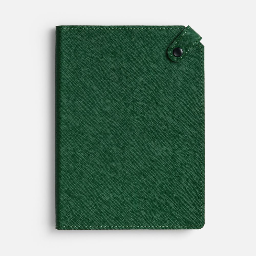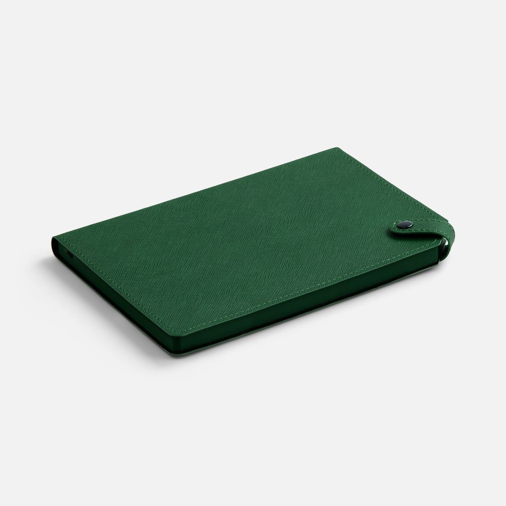 Ежедневник с гибкой обложкой, выполнен из материала Espresso, дополнен ляссе черного цвета и хлястиком на кнопке.