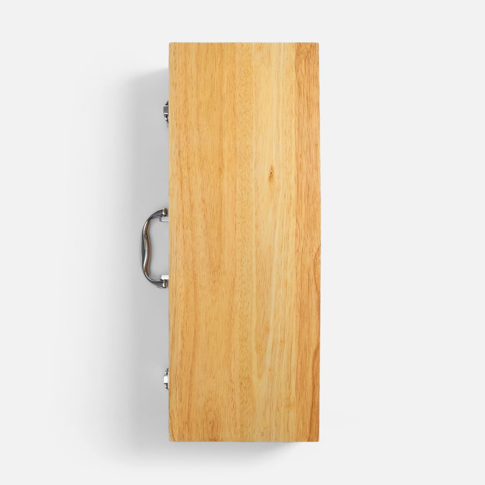 Стильный деревянный кейс не только защищает инструменты при хранении, но и позволяет легко транспортировать набор куда угодно — в загородный дом, ближайший парк или на природу.В набор входят: щипцы, вилка, лопатка и нож.