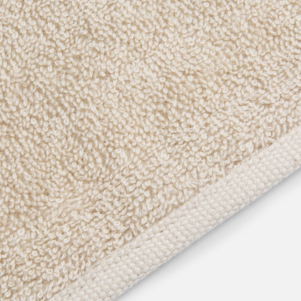 Светлые оттенки в сочетании с широким бордюром с рельефным растительным узором придают полотенцу элегантный и свежий вид.