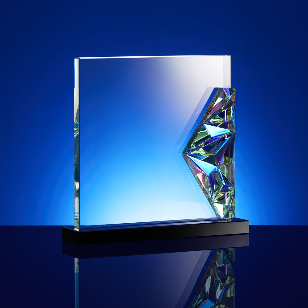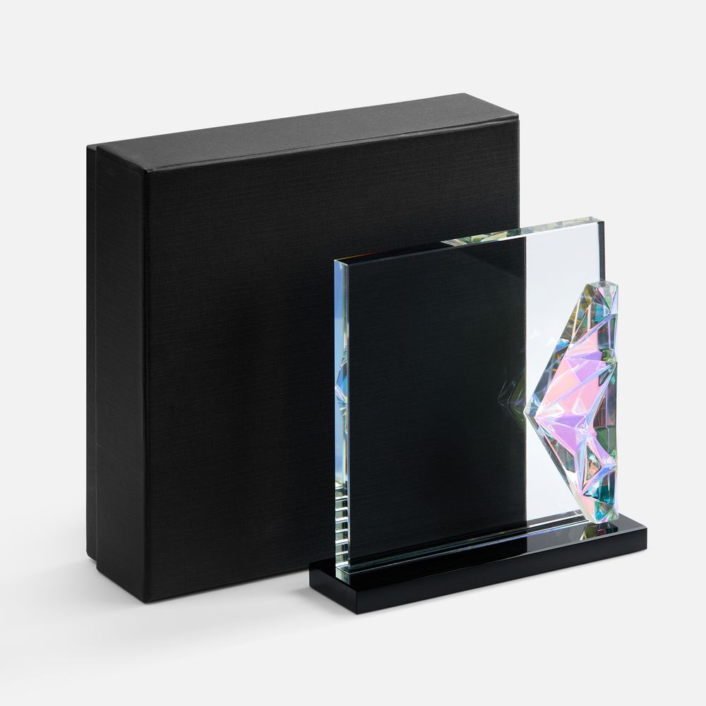 Evergleam — оригинальное исполнение традиционной стелы с эффектной цветной вставкой. Эта переливающаяся разными оттенками объемная деталь, словно какой-то фантастический кристалл, добавляет привычной награде магии и свежести, олицетворяя драгоценность признанного успеха и высокое мастерство самого получателя.