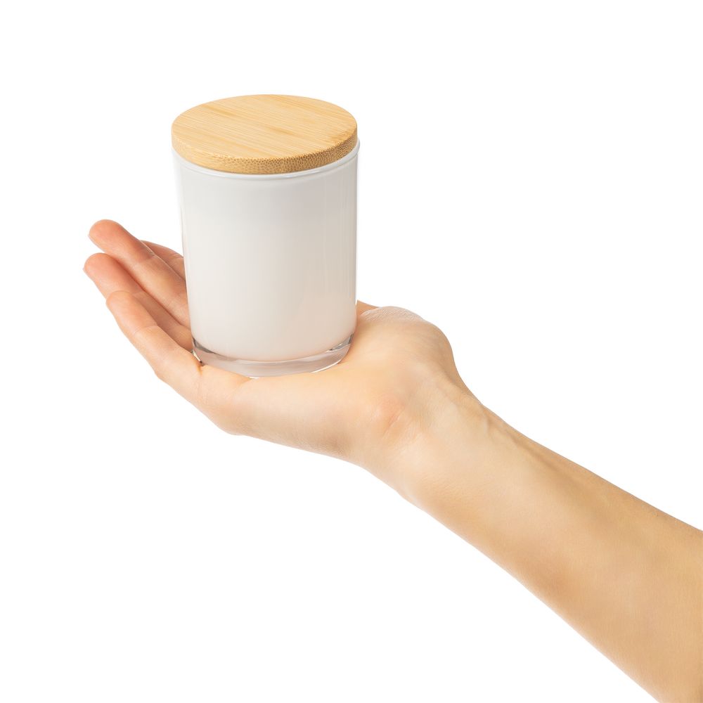 свеча - воск, кокосовый, парафин; подсвечник - стекло; крышка - дерево; фитиль - дерево