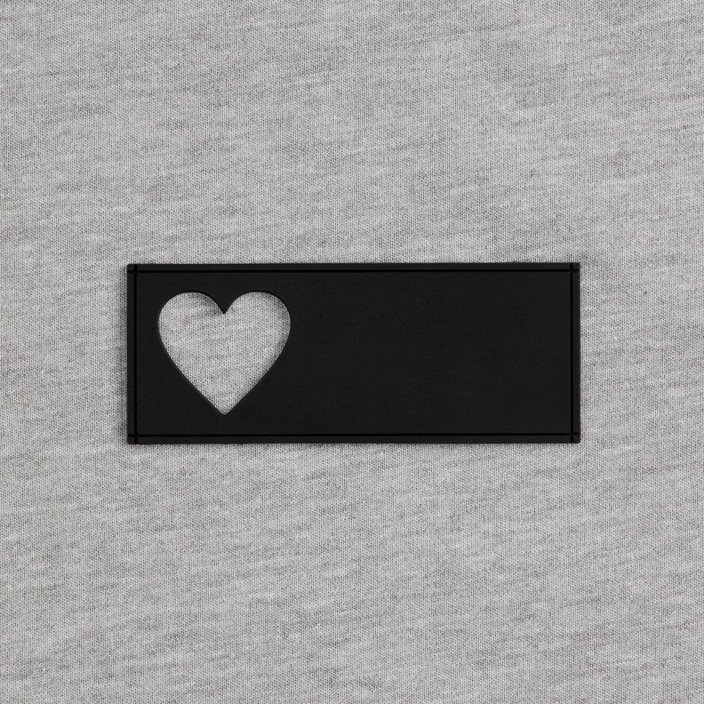 - сделать нанесение на изделии, поверх которого нашить лейбл так, чтобы вырубка стала частью целостного и уникального дизайна.