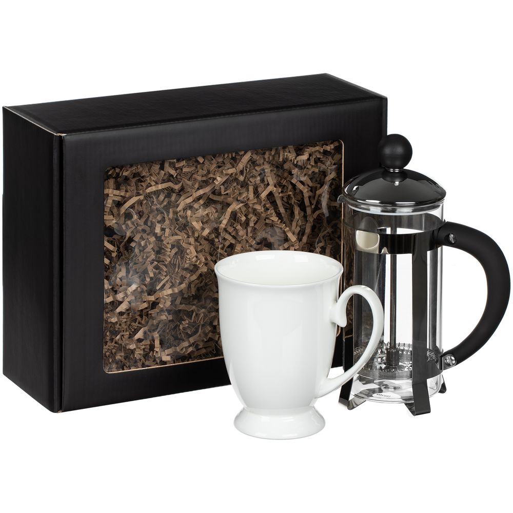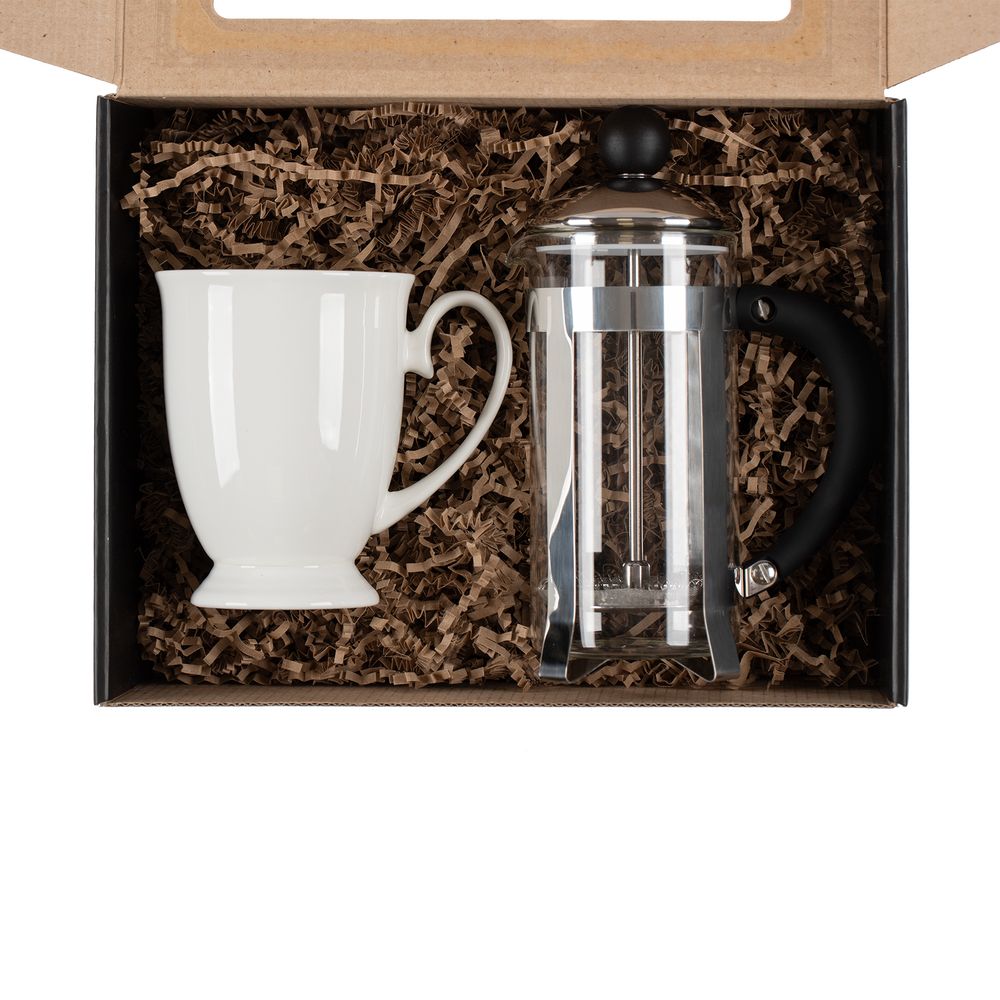 френч-пресс - боросиликатное стекло; нержавеющая сталь; кружка - костяной фарфор