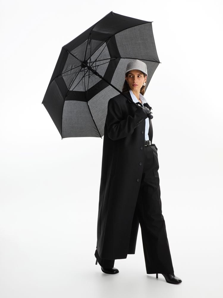 Зонт-трость Dome Double с большим двойным куполом — персональный шатер в ненастье. Он не выгибается при порывах ветра, а особая конструкция двойного купола уменьшает парусность зонта.