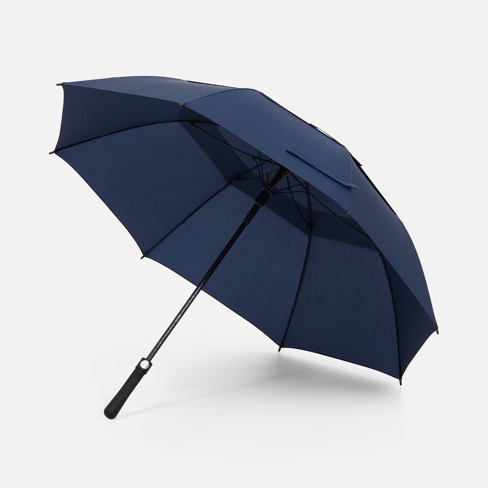 Зонт-трость Dome Double с большим двойным куполом — персональный шатер в ненастье. Он не выгибается при порывах ветра, а особая конструкция двойного купола уменьшает парусность зонта.