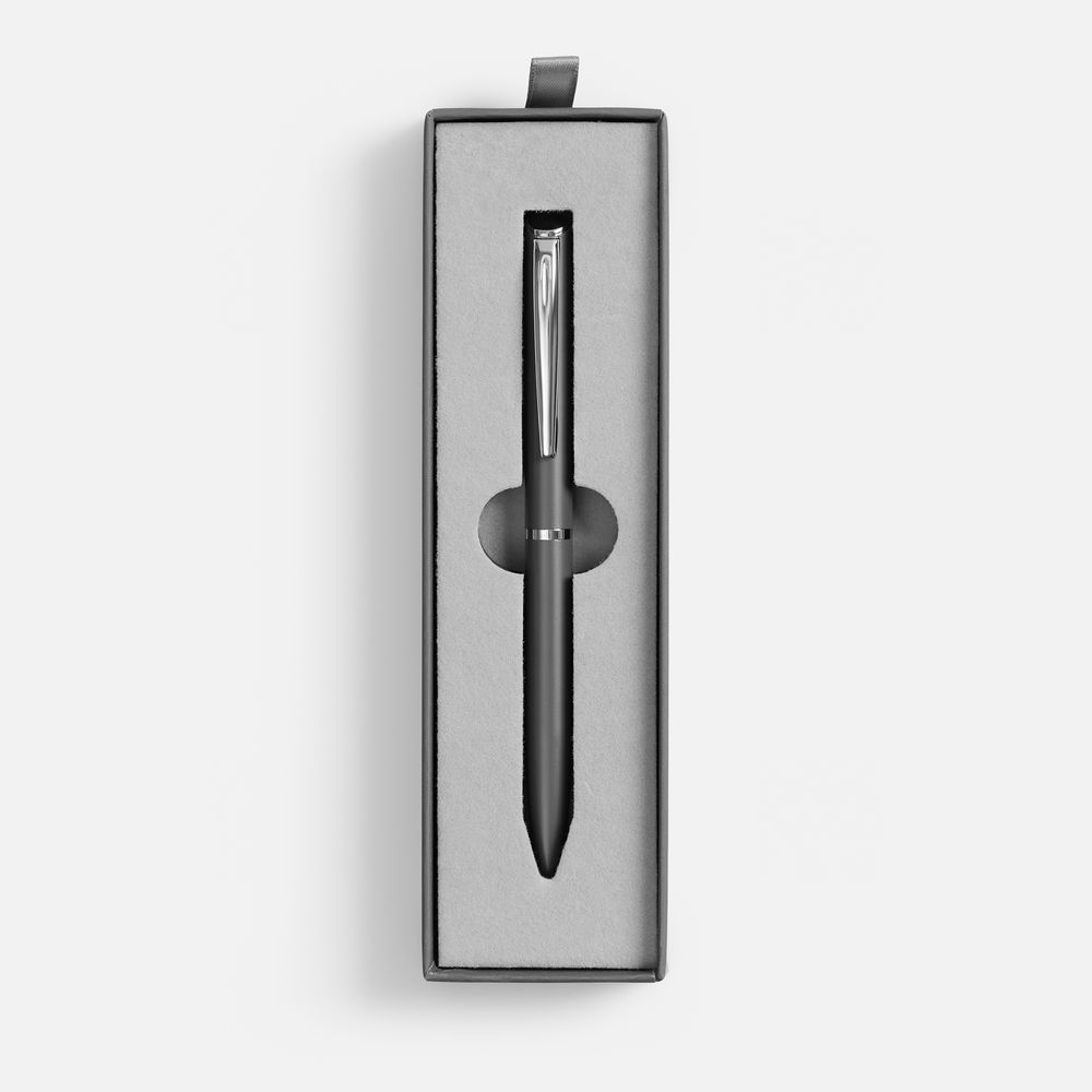 ручка - металл; футляр - картон; футляр - покрытие софт-тач