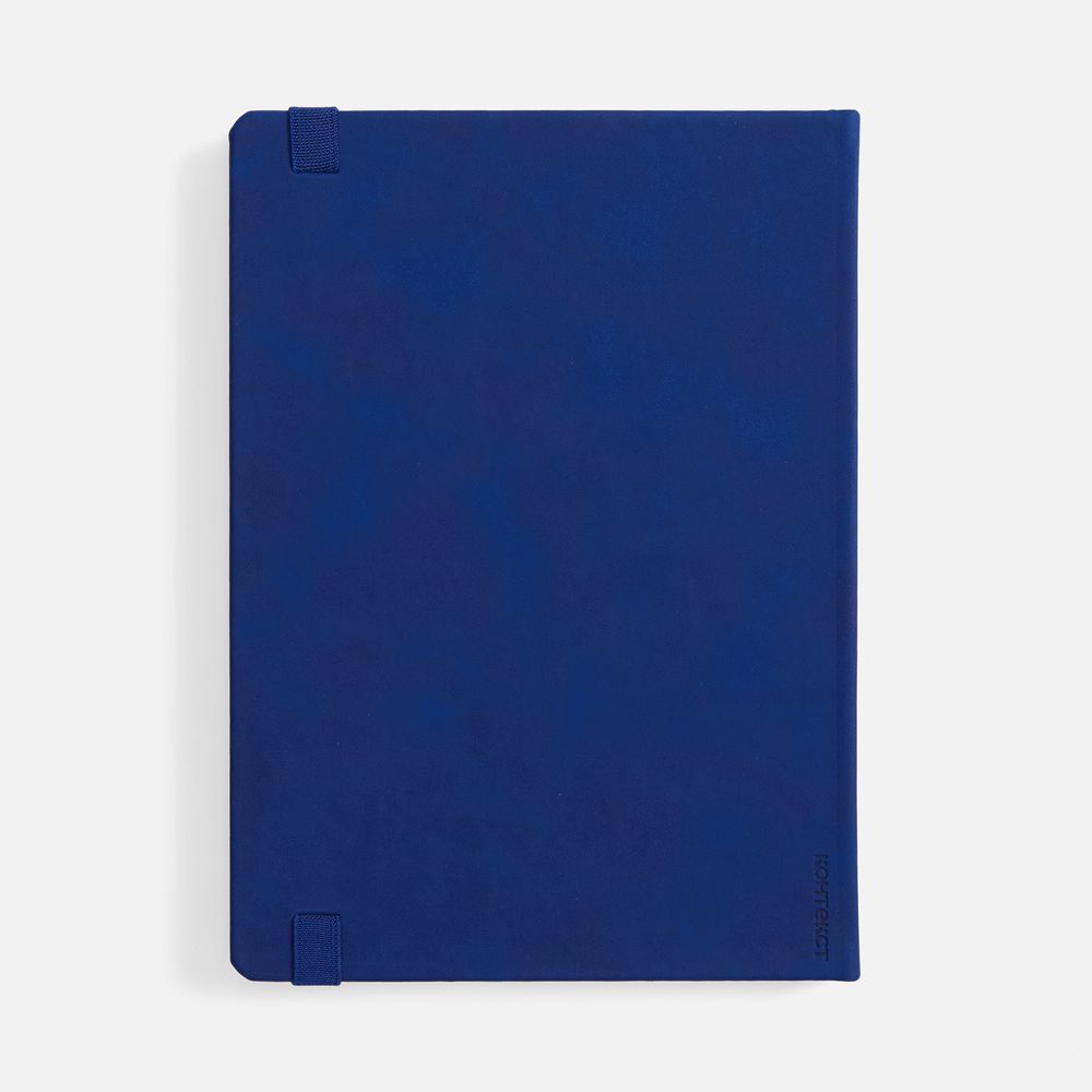 Ежедневник с твердой обложкой, выполнен из материала Nubuck Touch, синий НН, дополнен ляссе темно-синего цвета.