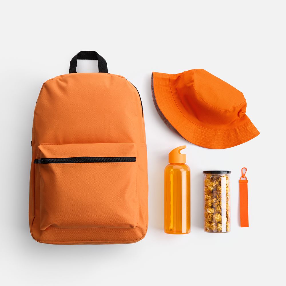 В нем есть все необходимое для комфортной летней прогулки: всегда актуальная в солнечный день панама, стиль которой можно менять буквально на ходу; бутылка для воды оптимального объема, а также сладкий снек для полезного и питательного перекуса. А захватить все с собой, конечно, будет удобно в лаконичном базовом городском рюкзаке, дополнительно оформленном ремувкой — стильным съемным текстильным брелком.