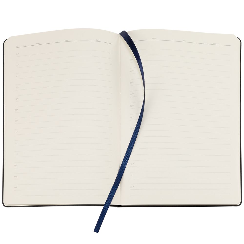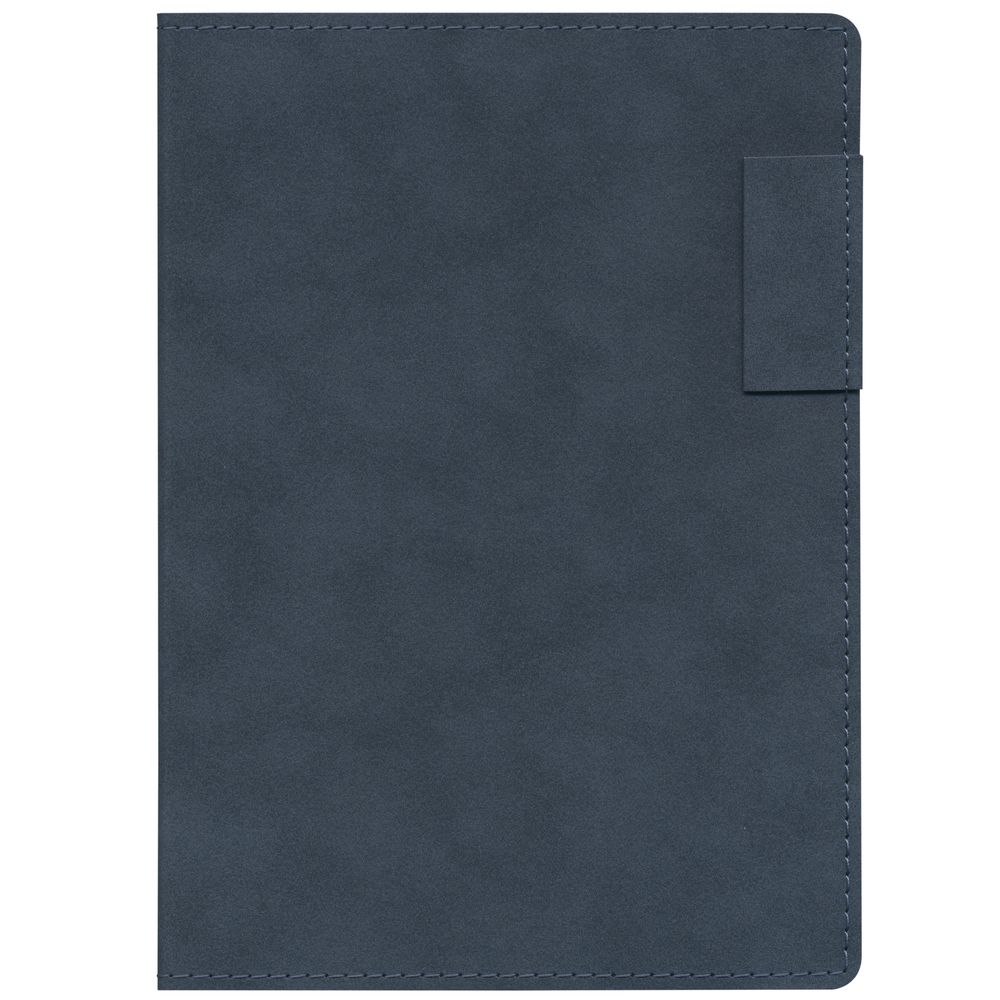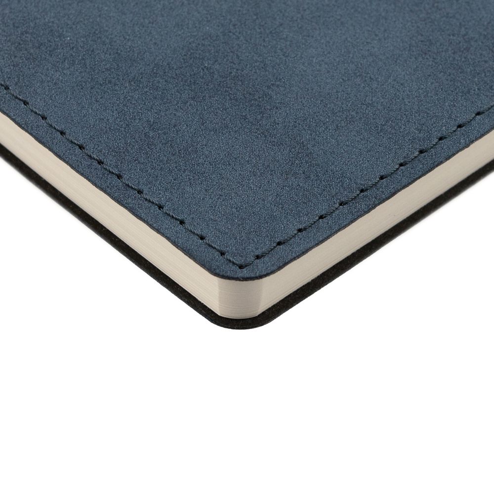 Ежедневник с гибкой обложкой, выполнен из материала Nubuck, темно-синий ХХ, дополнен петлей-лейблом для ручки и ляссе в цвет материала.