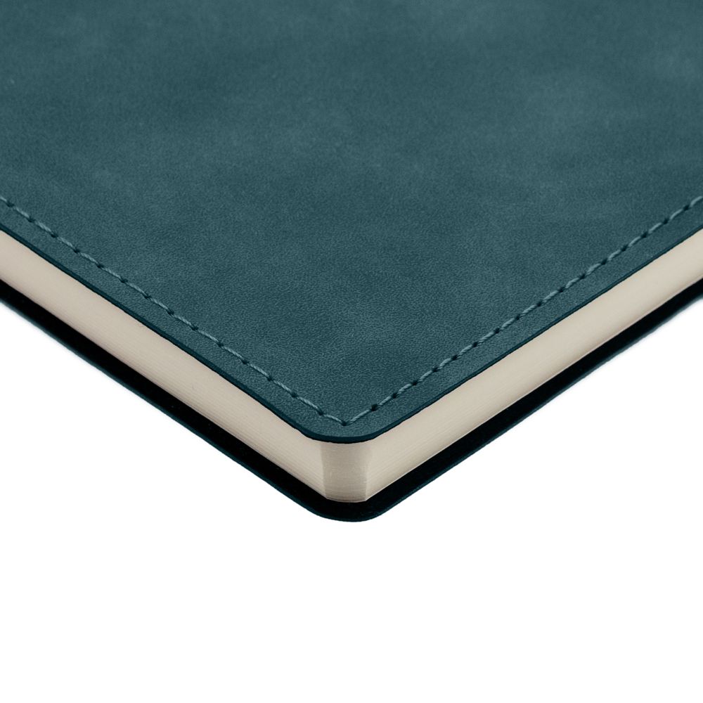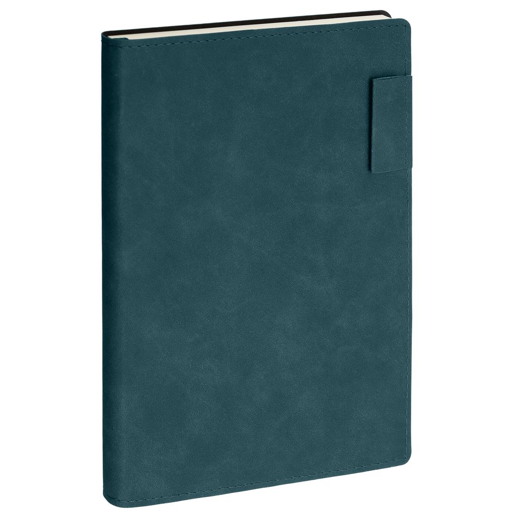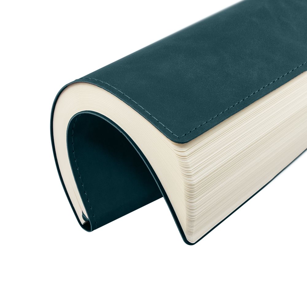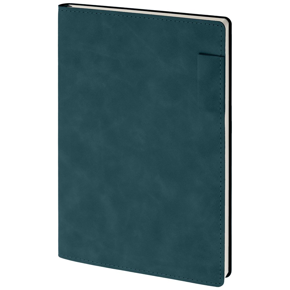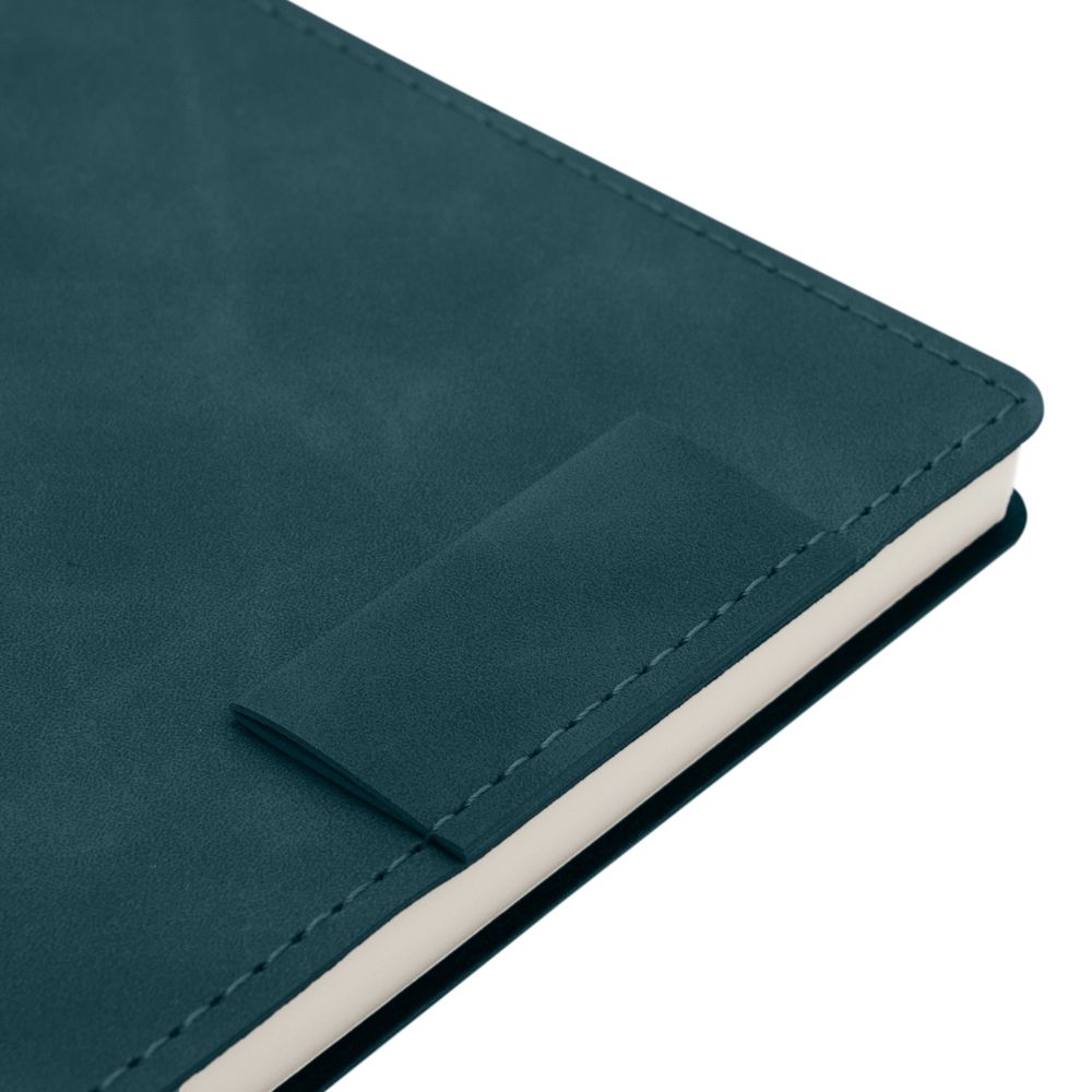 Ежедневник 17х24 см, с гибкой обложкой, выполнен из материала Nubuck Touch, темно-зеленый VV, дополнен петлей-лейблом для ручки и двойным ляссе в цвет материала.