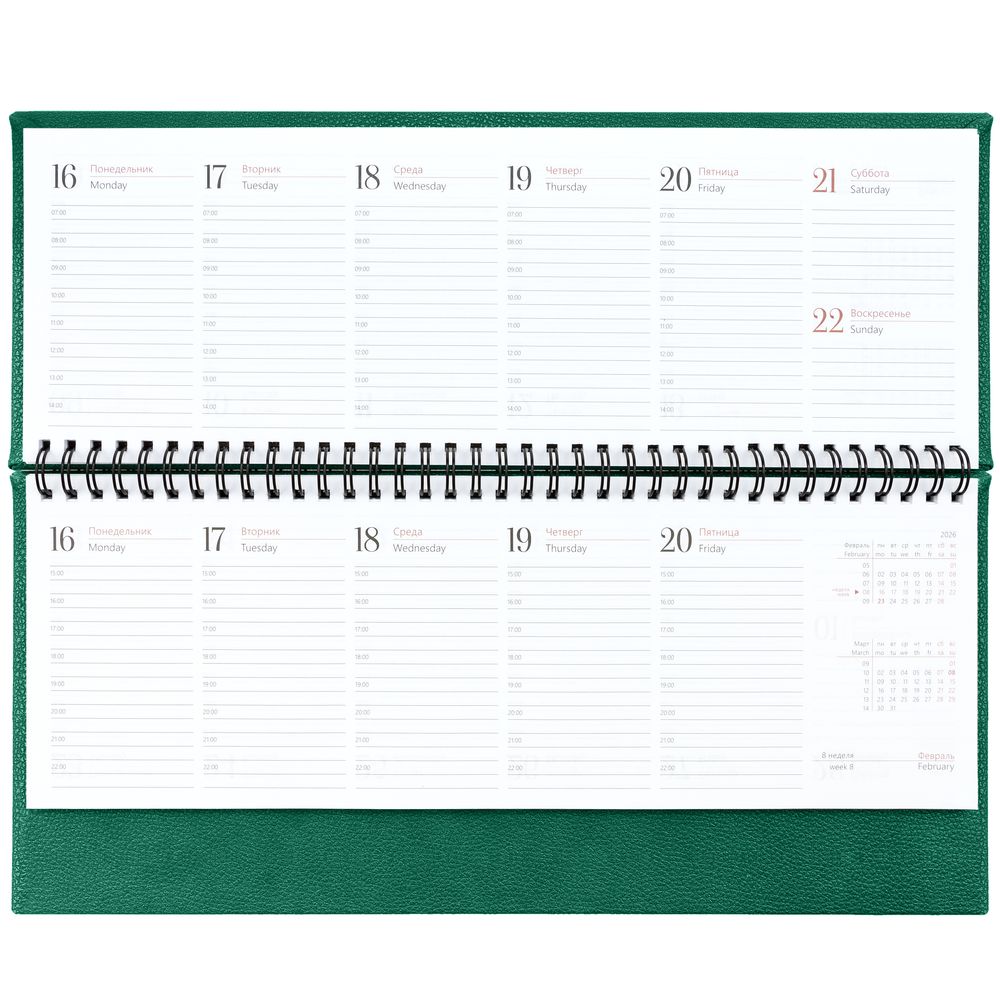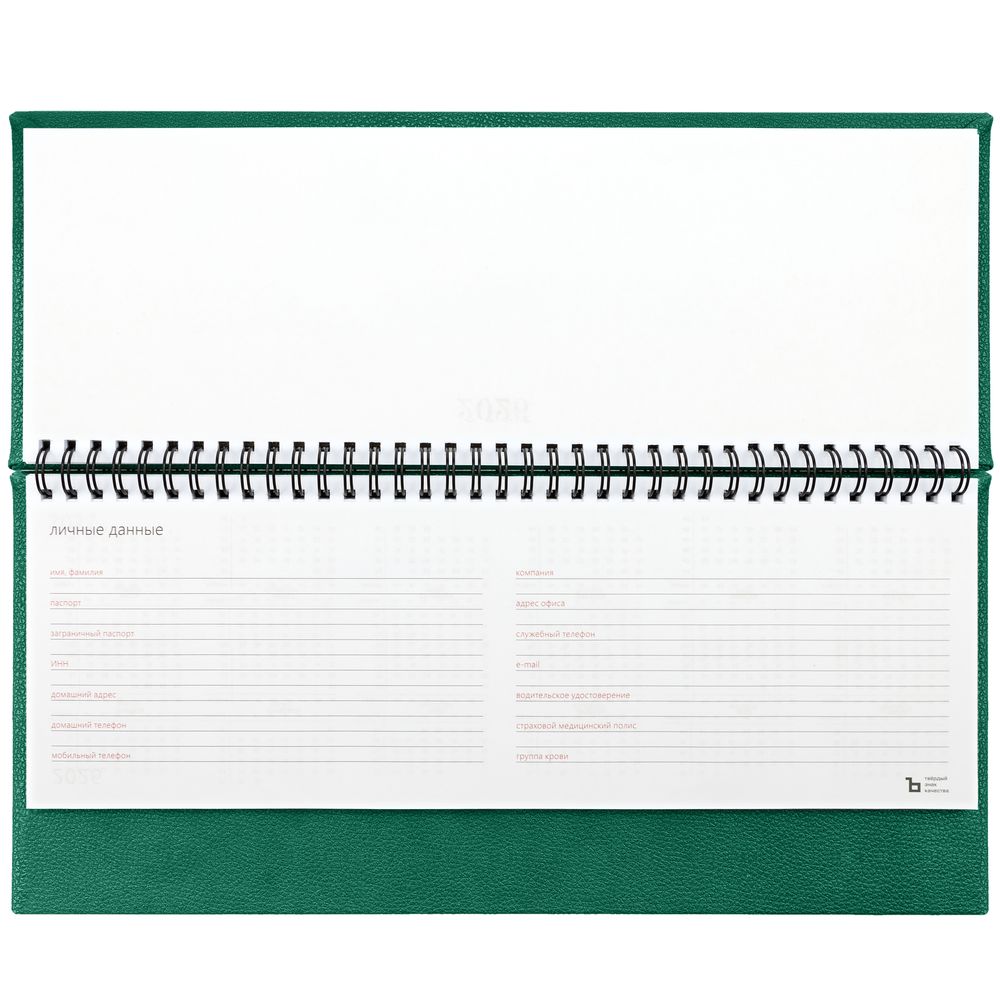 Планинг с твердой обложкой с поролоном, выполнен из материала La Fite, зеленый FF.