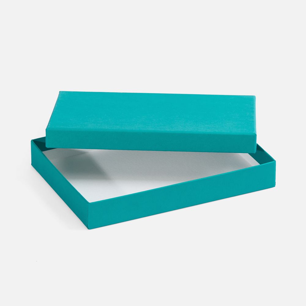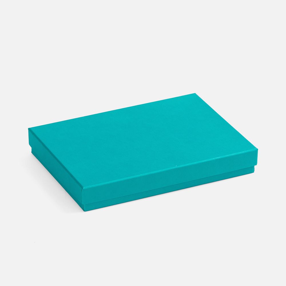 Коробка изготовлена из переплетного картона, кашированного гладкой дизайнерской бумагой Efalin.