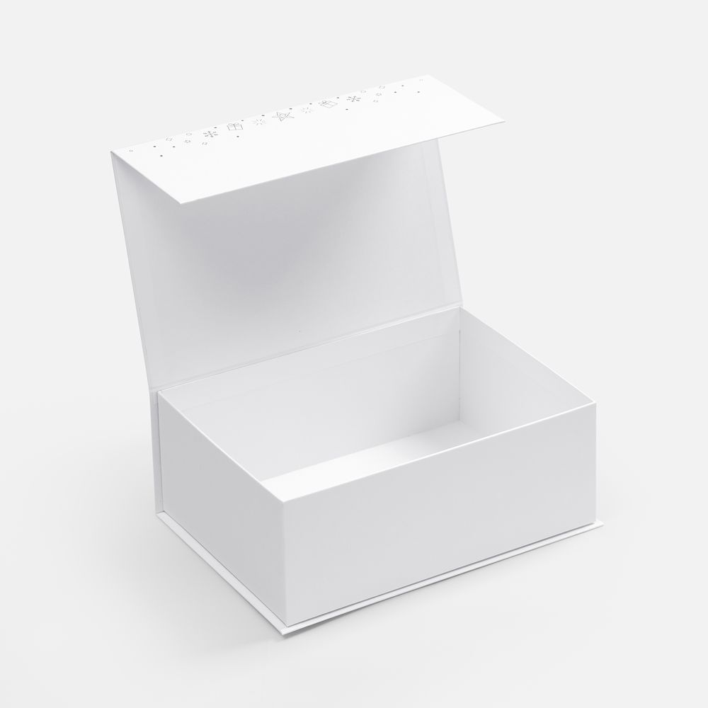 Подарочная коробка Snowlace с новогодним паттерном станет стильным дополнением к праздничному презенту.