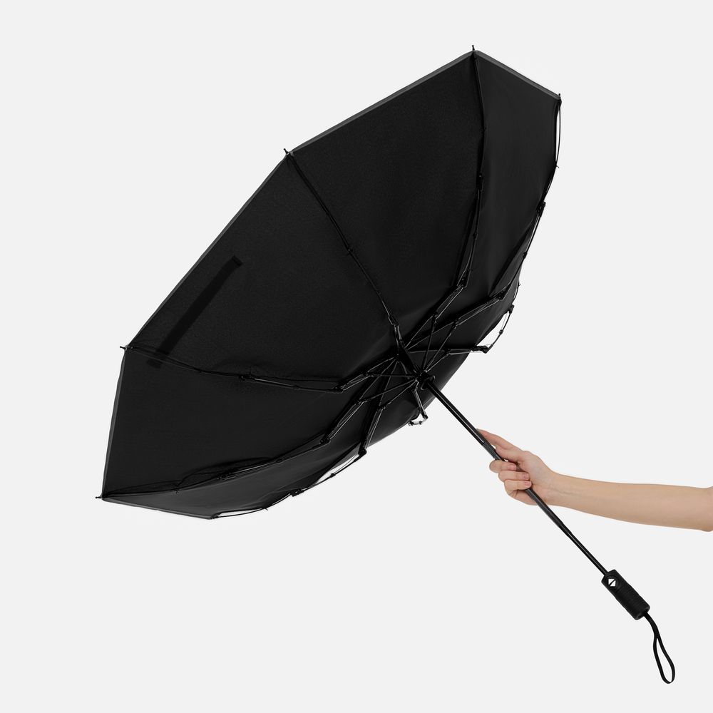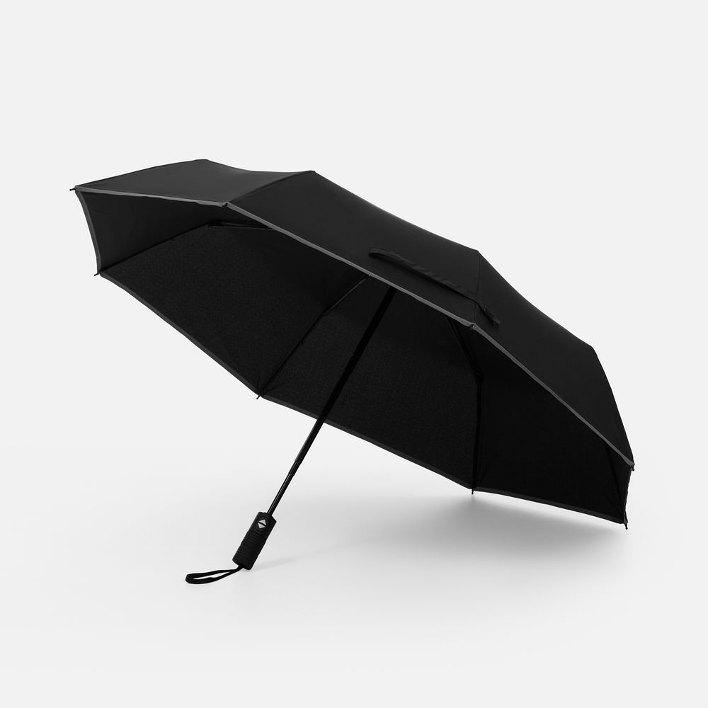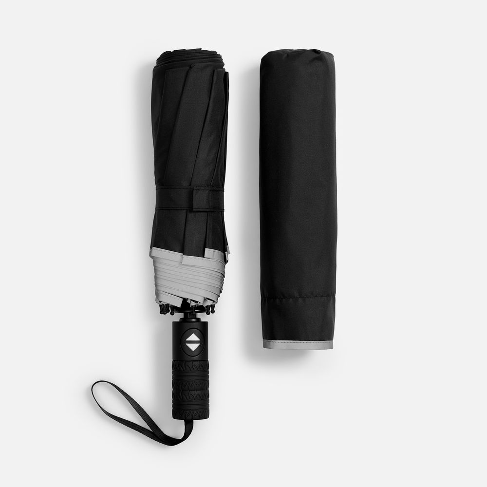 Стильный прочный зонт Tyre не боится ржавчины и нагрузок благодаря каркасу из стекловолокна. Светоотражающий кант делает этот зонт незаменимым спутником в темное время суток, а тактильный рисунок протектора шины на ручке превращает его в продуманный подарок для всех автолюбителей и партнеров этой сферы.