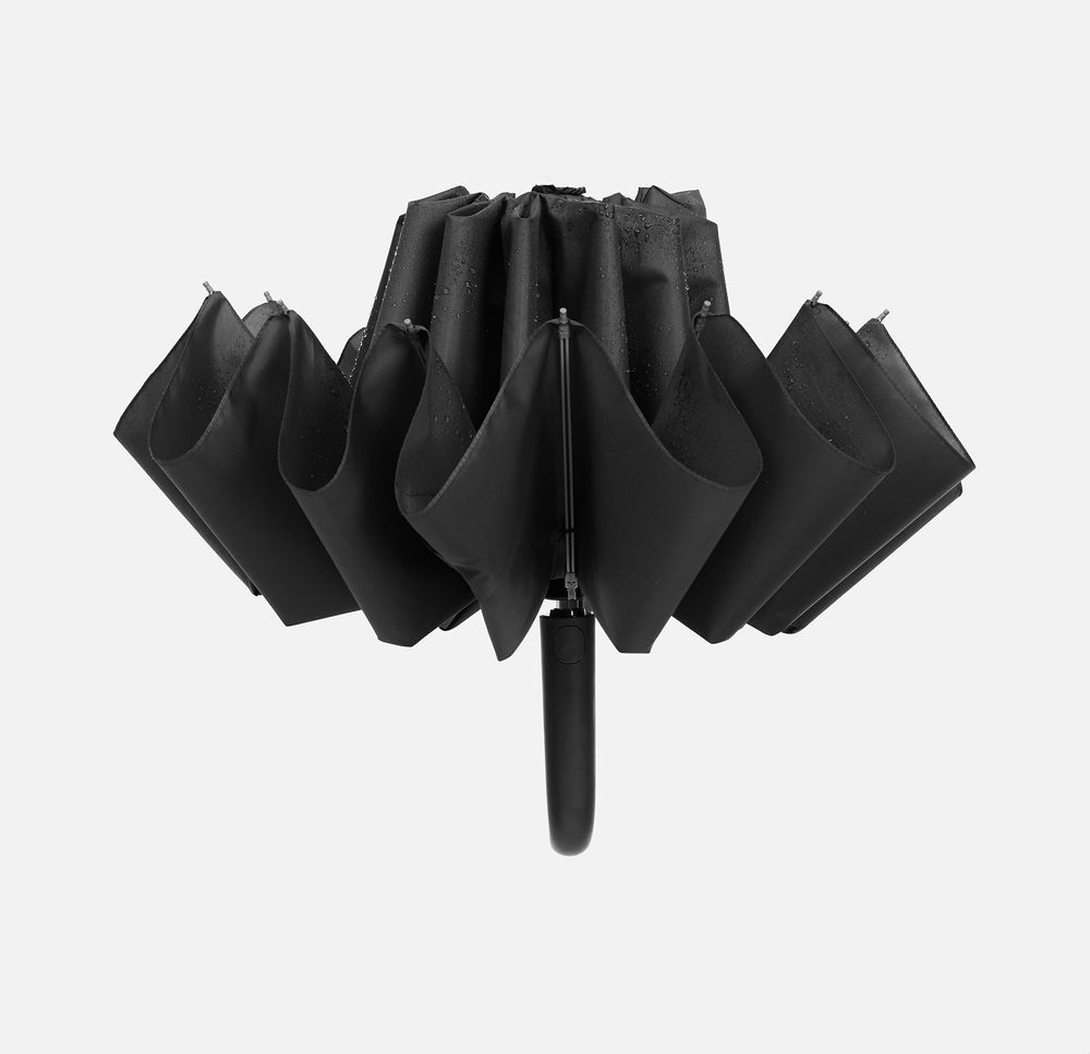 Зонт-автомат обратного сложения с 12 спицами, легким алюминиевым штоком и ручкой-карабином.