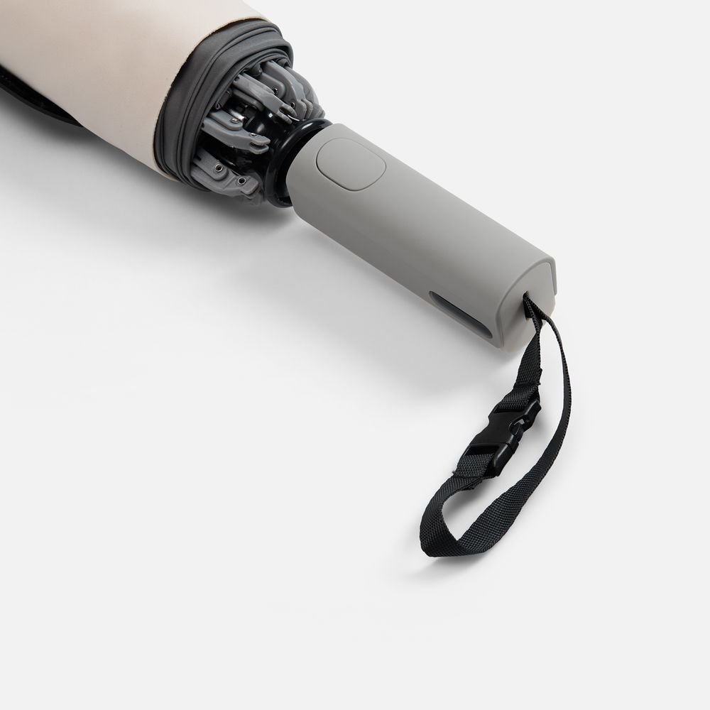 Складываясь после дождя, он прячет мокрую поверхность внутри, а сухая остается снаружи: в закрытом положении зонт не побеспокоит окружающих и не намочит одежду. Благодаря застежке на ремешке зонт удобно подвесить, например, на рюкзак.