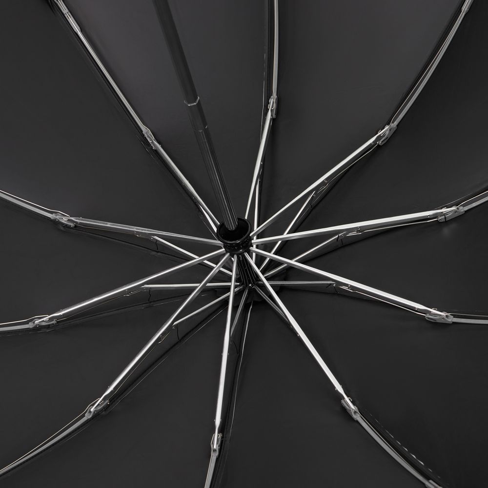 Складываясь после дождя, зонт прячет мокрую поверхность внутри, а сухая остается снаружи: так в закрытом положении он не побеспокоит окружающих и не намочит одежду. За ручку-карабин зонт удобно подвесить, например, на рюкзак.
