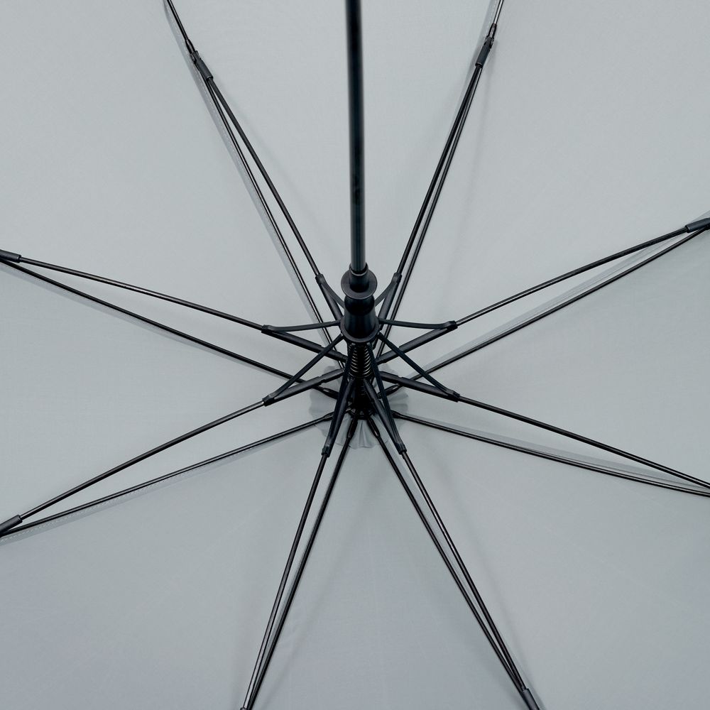 Современная модель зонта-трости с эргономичной ручкой, каркасом из стеклопластика и увеличенным размером купола.