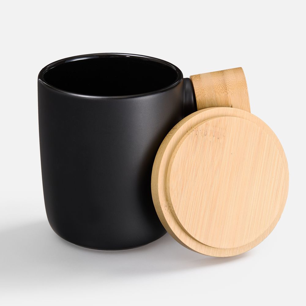 Стильная кружка с крышкой и ручкой из бамбука станет самой любимой на полке! Это идеальный компаньон для продуктивного диалога или умиротворяющего уединения.