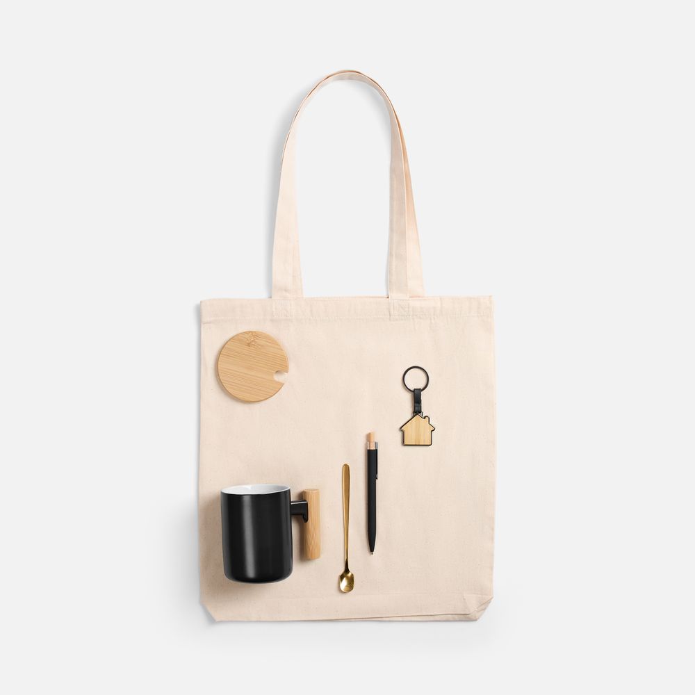 В комплекте: полезные и функциональные аксессуары с деталями из бамбука, упакованные во вместительную холщовую сумку. Все для вдохновенных идей и продуктивных дней!