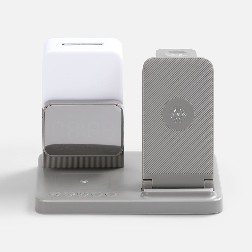 Large Charge — многофункциональное устройство, которое сочетает в себе функции станции для проводной и беспроводной зарядки разнообразных устройств, настольных часов с будильником и лампы.