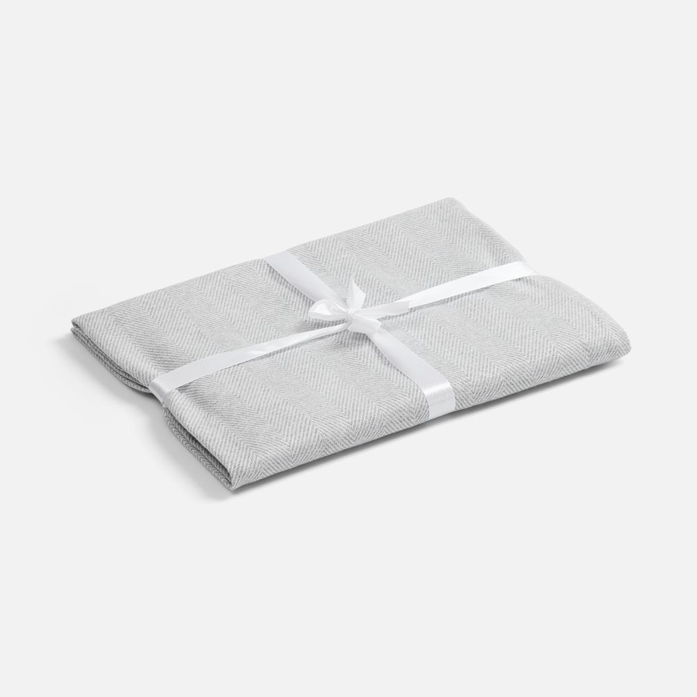 Классический рисунок «елочка» не слишком привлекает внимание, но в то же время добавляет изюминки. Смешанный состав пряжи продлевает срок службы и существенно облегчает уход за пледом.