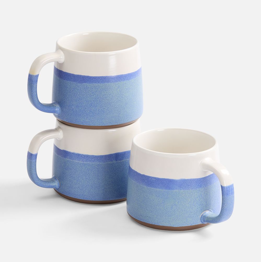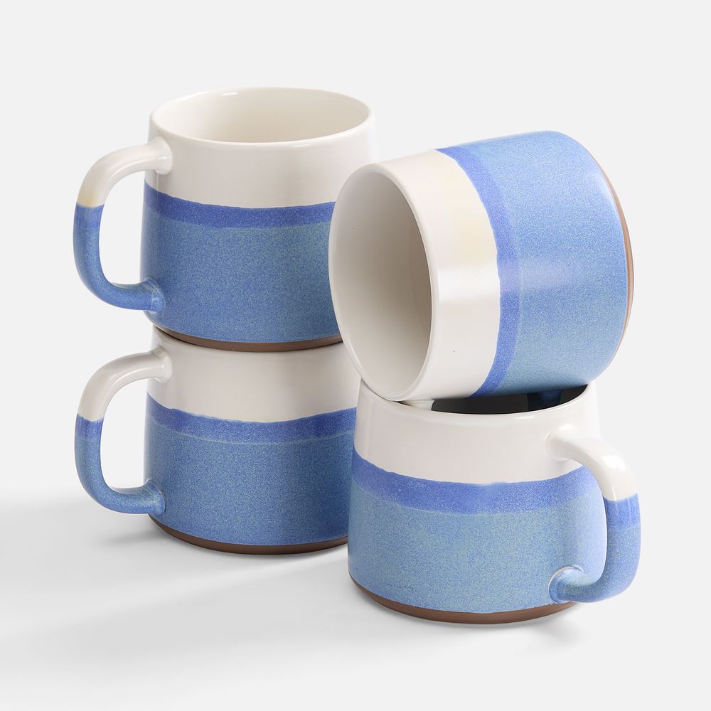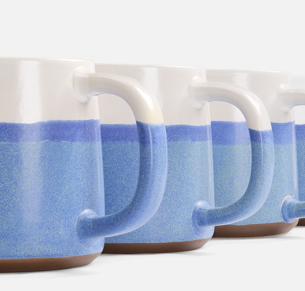 Нижняя половина кружки покрыта реактивной глазурью — особым видом керамического покрытия, компоненты которого вступают в химическую реакцию во время обжига при температуре 1200°C и выше. Из-за непредсказуемого взаимодействия компонентов создаются уникальные переливы, узоры и текстуры, поэтому в партии невозможно найти два абсолютно одинаковых изделия.