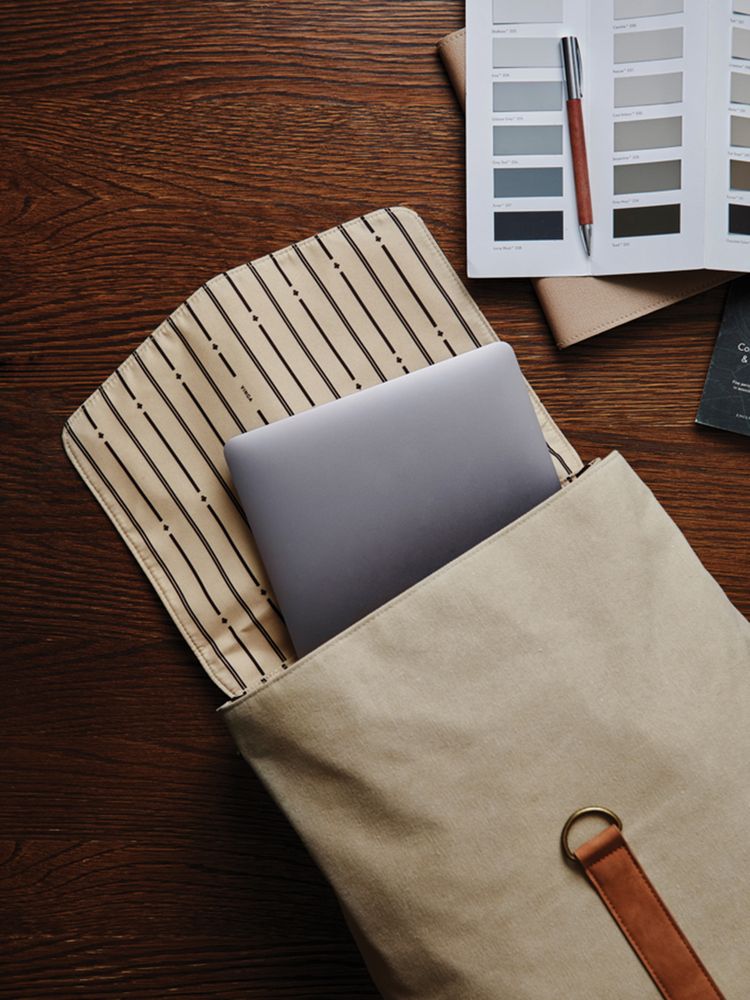 Рюкзак Bosler изготовлен из переработанного канваса: он не только выглядит модно, но и демонстрирует заботу об окружающей среде. Рюкзак оснащен отделением для ноутбука и привлекает внимание контрастными деталями из полиуретана и латунной фурнитурой.