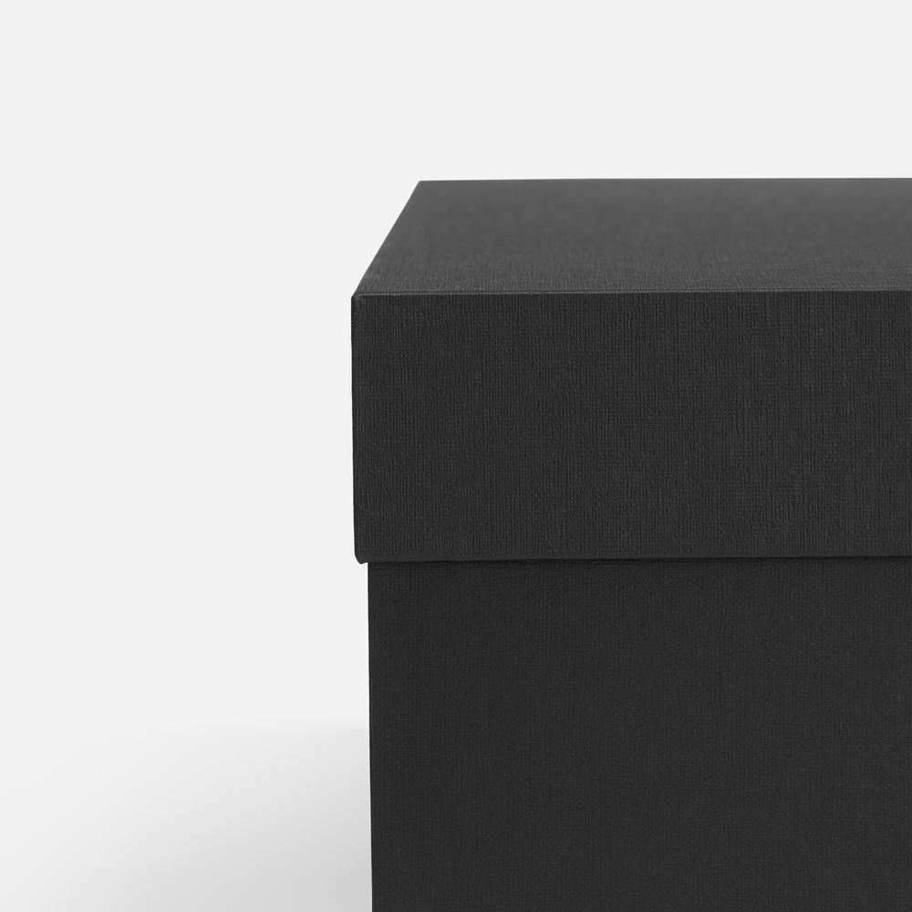 Коробка изготовлена из переплетного картона, кашированного дизайнерской бумагой.