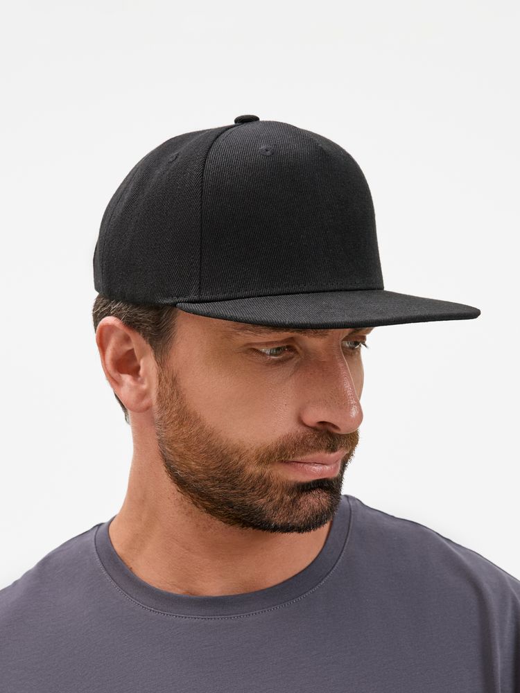 Бейсболка с прямым козырьком из плотного фактурного полиэстера отлично держит форму и не выцветает.