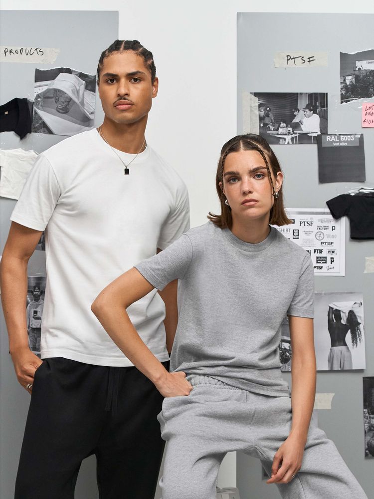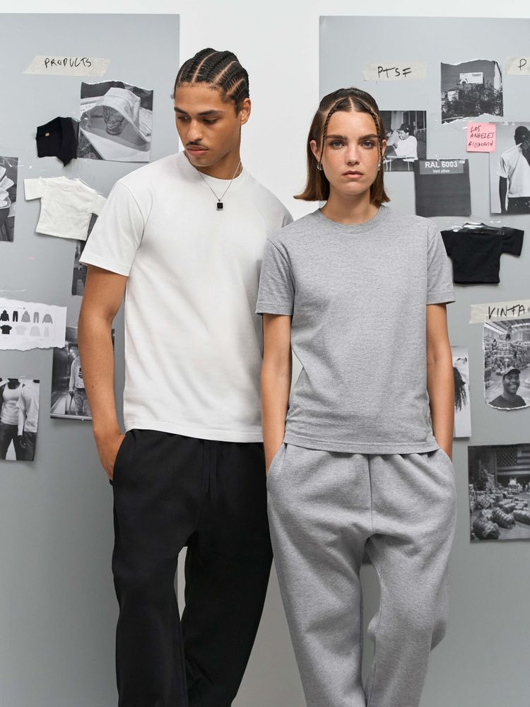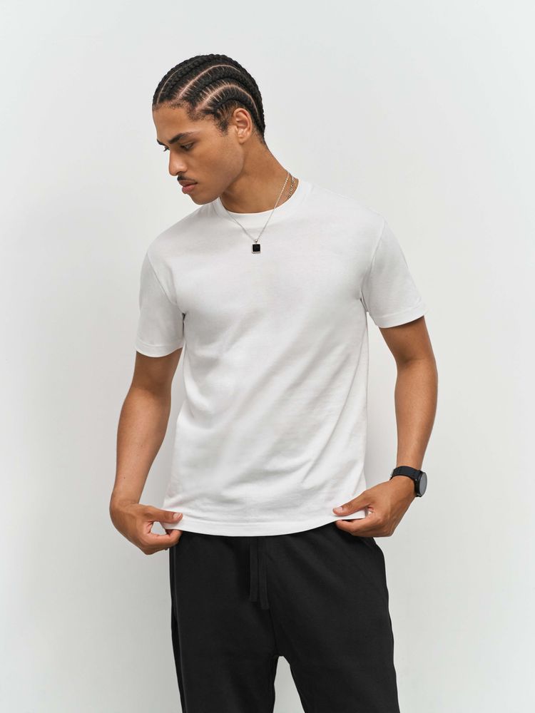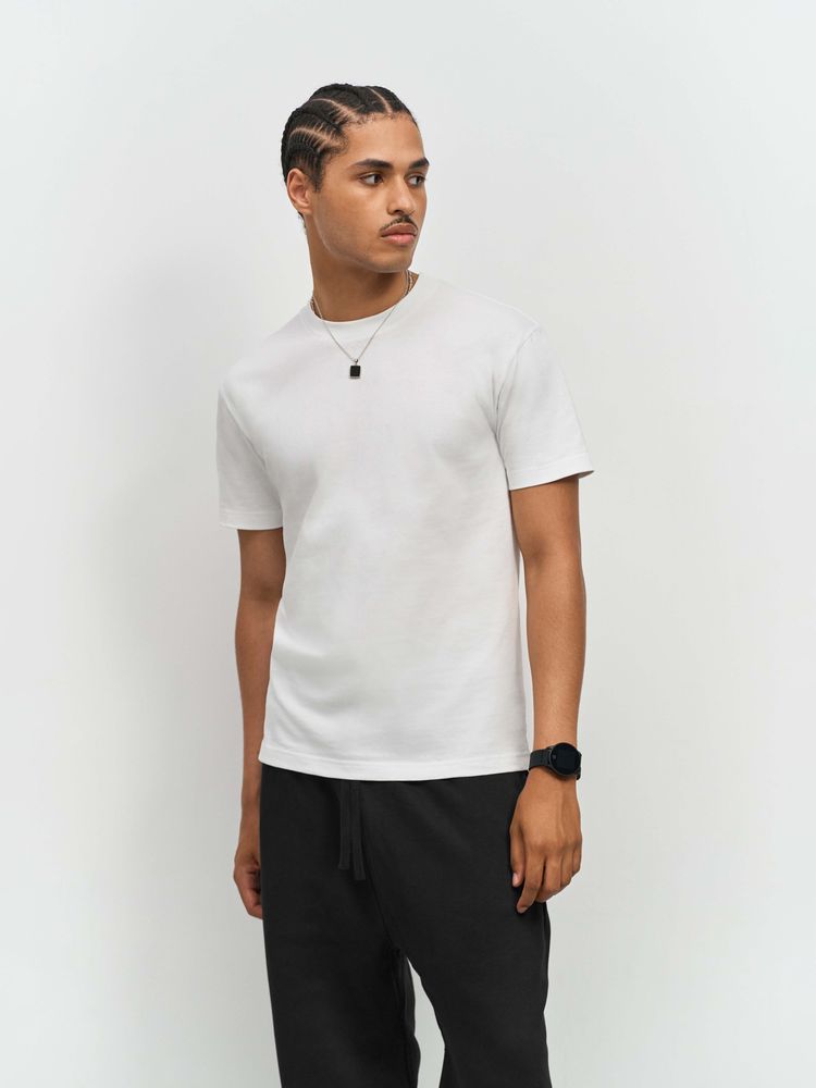 Ткань хорошо держит форму и не просвечивает, при этом футболка остается мягкой и приятной к телу. Особенности обработки волокна и конструкция с заметной высокой горловиной создает аутентичный образ с винтажной фактурой.