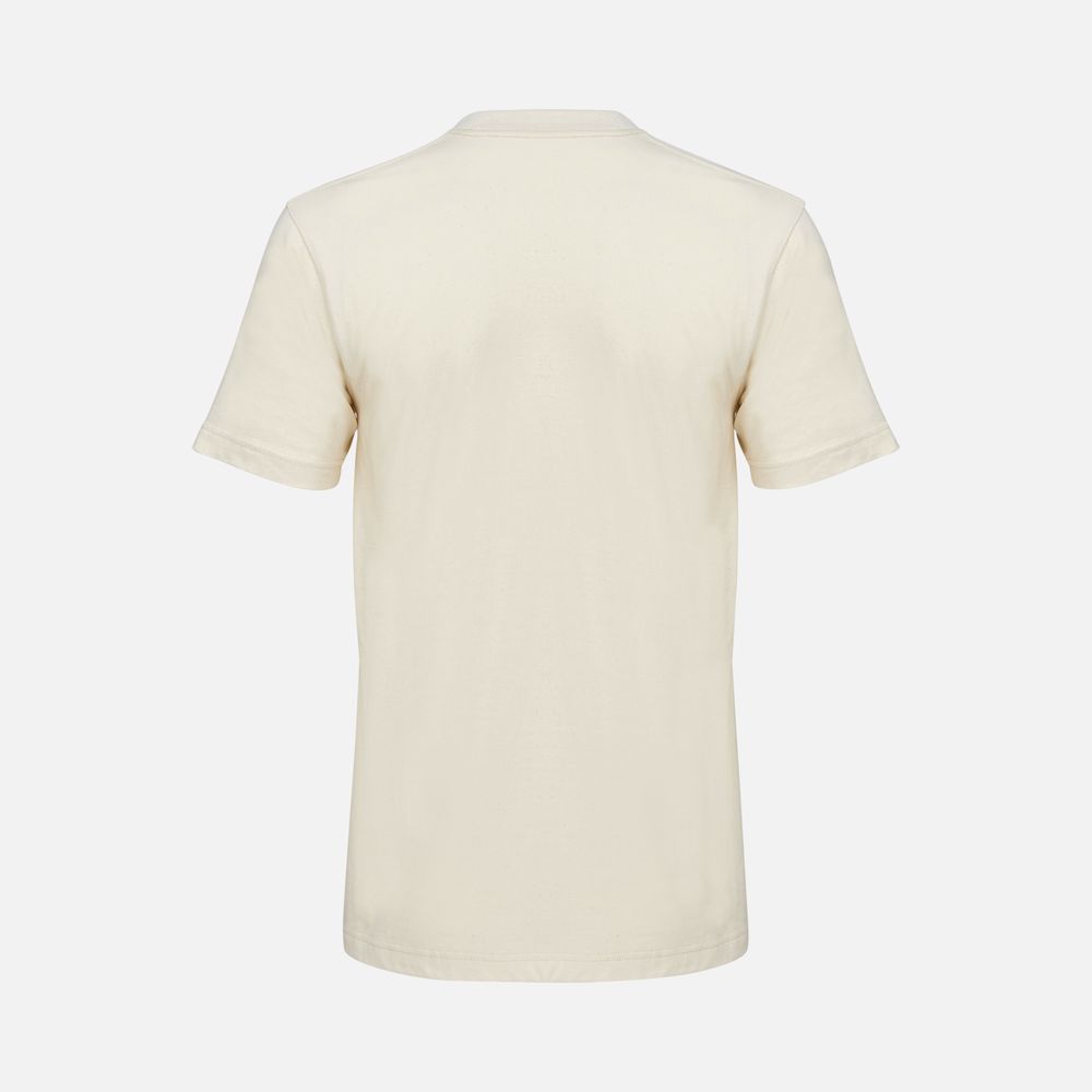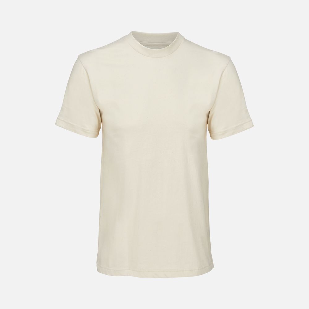 Ткань хорошо держит форму и не просвечивает, при этом футболка остается мягкой и приятной к телу. Особенности обработки волокна и конструкция с заметной высокой горловиной создает аутентичный образ с винтажной фактурой.