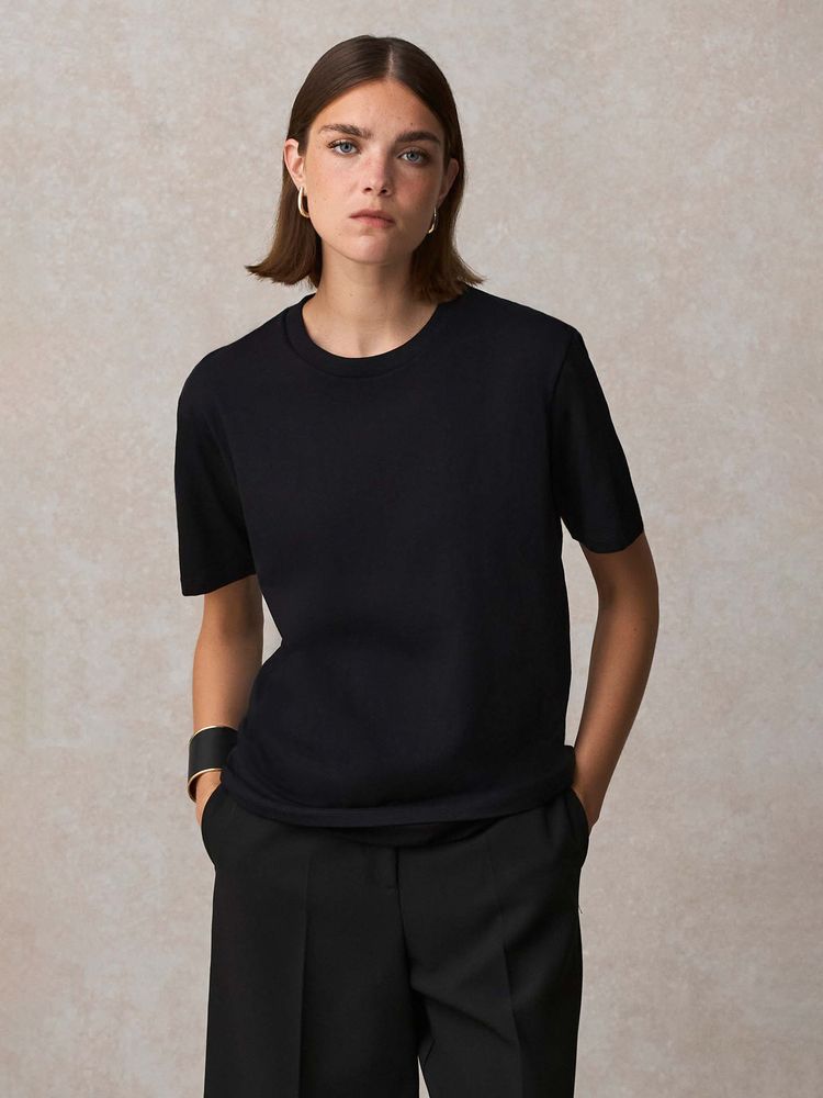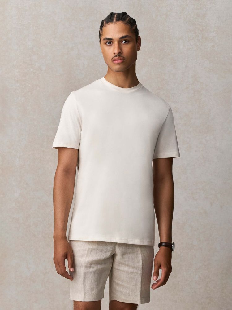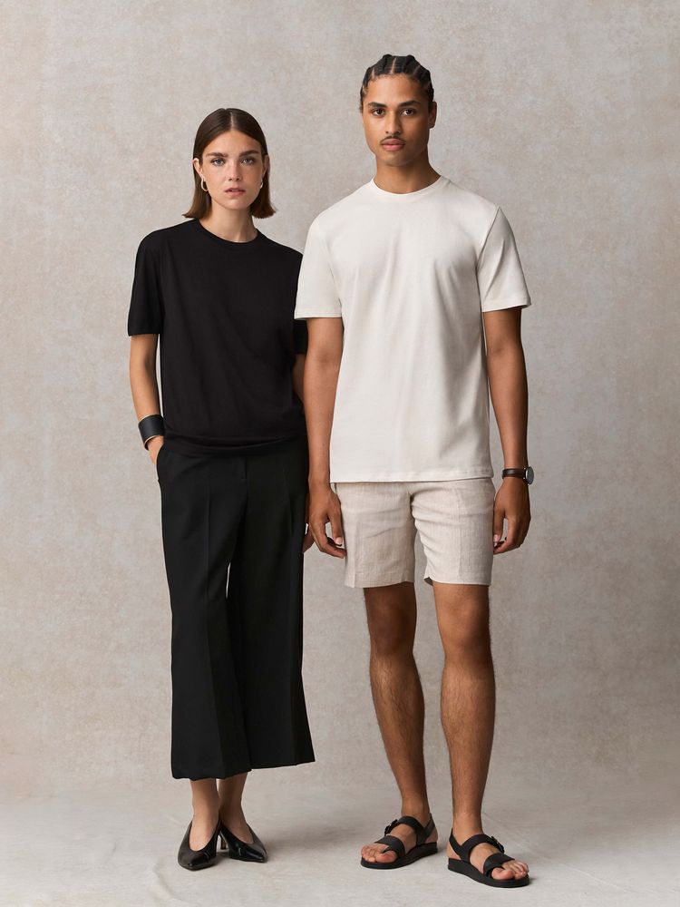 Благодаря идеальным пропорциям гребенного хлопка и переработанного полиэстера в составе, а также дополнительным обработкам ее полотно обладает повышенной мягкостью, шелковистостью и очень приятно на ощупь. Кроме того, футболка меньше мнется, не теряет форму после стирок и обладает высоким показателем Qmax — коэффициента мгновенной теплопроводности, который показывает, как быстро ткань забирает тепло от кожи. Именно он обеспечивает ощутимый эффект свежести и прохлады при первом прикосновении к ткани.