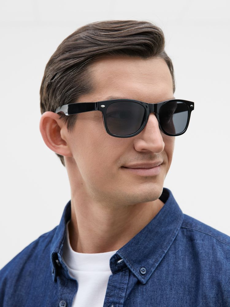 Очки с винтажной пластиковой оправой выполнены в лаконичном стиле. Благодаря универсальному размеру подойдут как мужчинам, так и женщинам. Идеальный промоподарок для летних фестивалей и различных мероприятий.Защита от УФ-лучей (UV400).