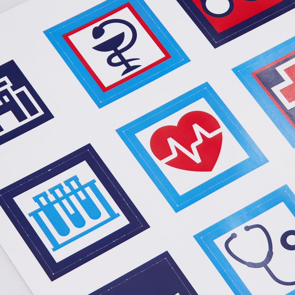 В каждой части общего рисунка изображены главные символы, связанные с медициной.