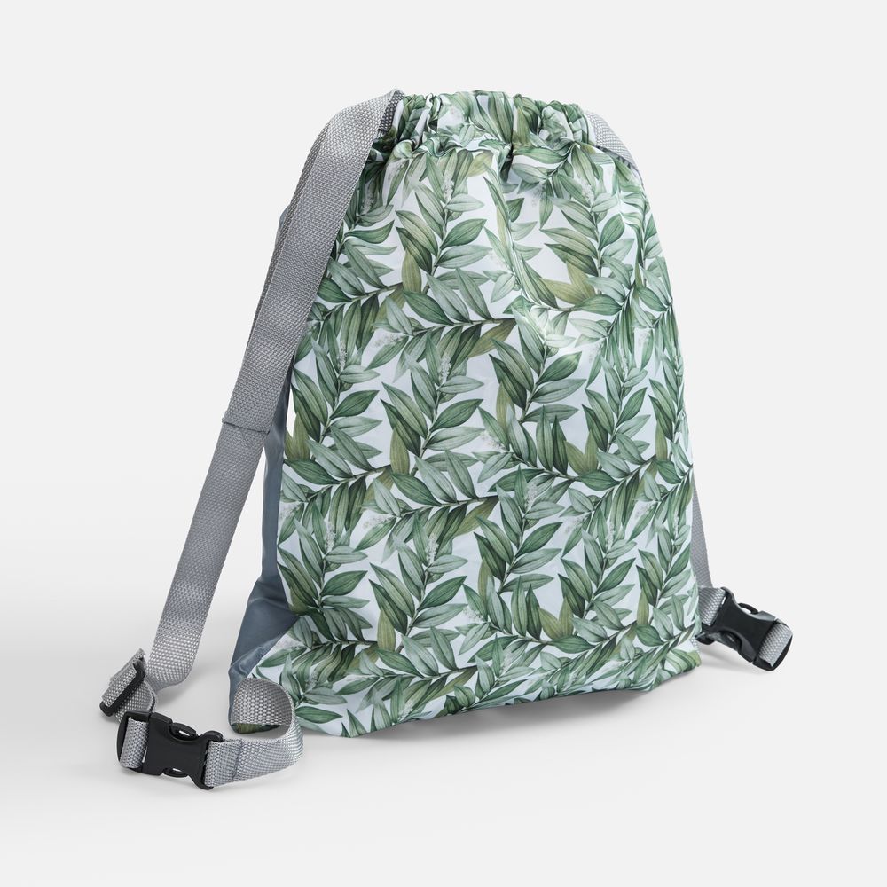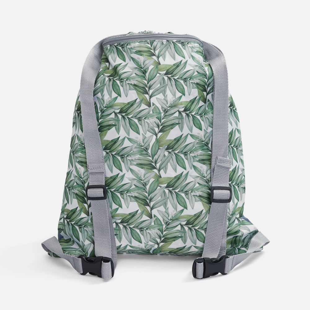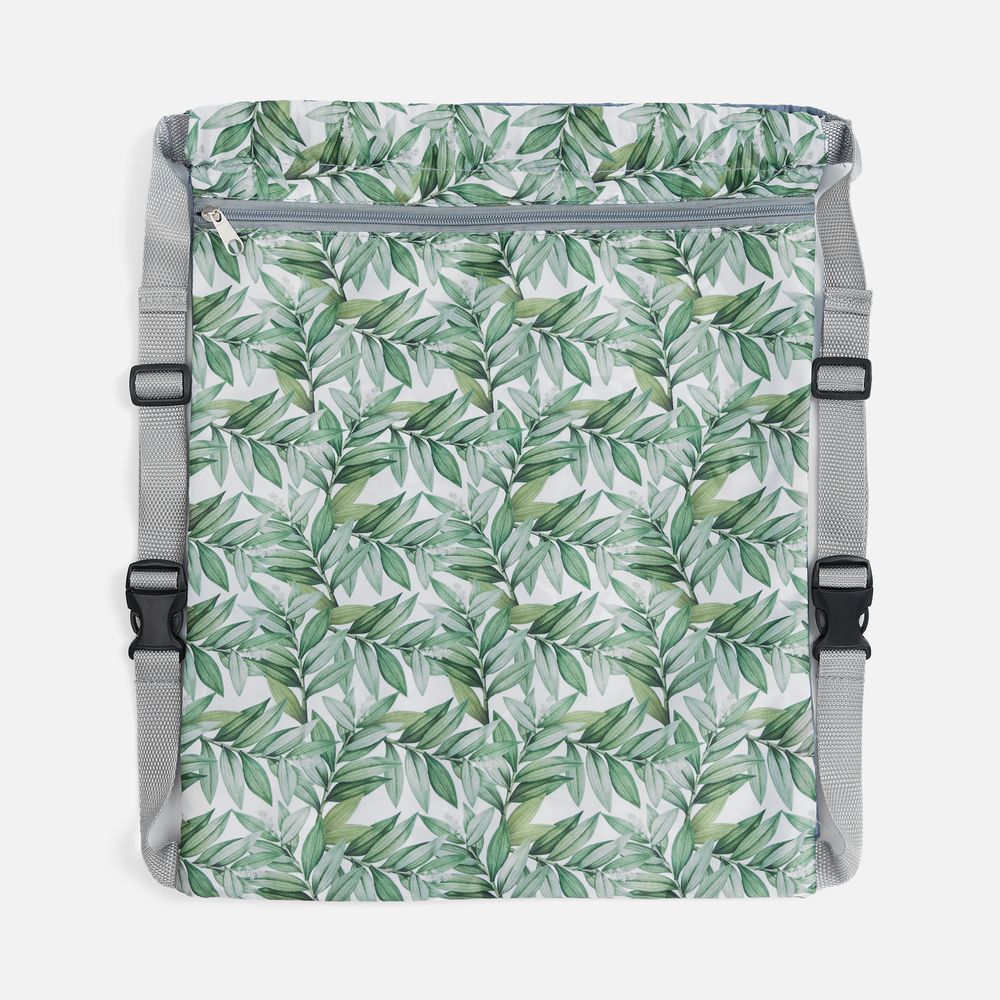 В стоимость входят запечатка полотна бесшовным паттерном методом сублимации для передней панели, раскрой и пошив изделия. Задняя панель, молния и стропы — серого цвета.