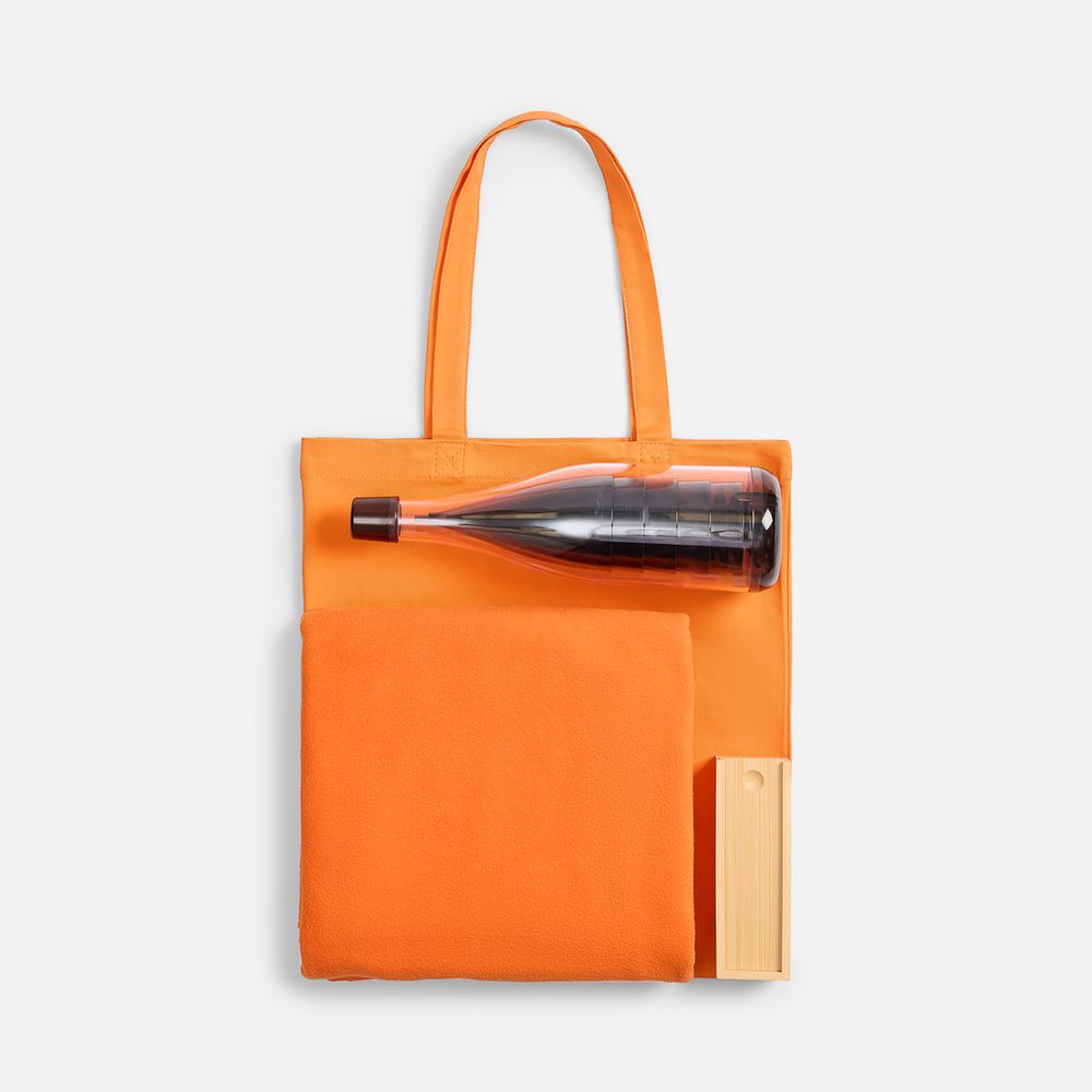 плед - флис, плотность 180 г/м²; набор бокалов - пластик; футляр для домино - бамбук; костяшки - МДФ; сумка - хлопок 100%, плотность 220 г/м²; саржа