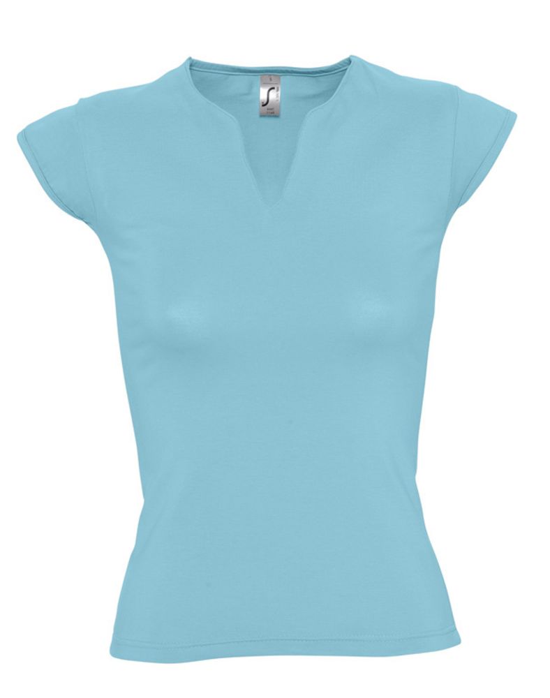 Женская кроенная футболка с оригинальным V-образным вырезом.