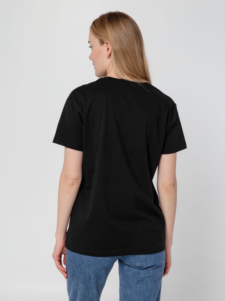 Базовая футболка унисекс прямого силуэта без боковых швов (размеры XS–4XL) или с боковыми швами (размеры 5XL–6XL).